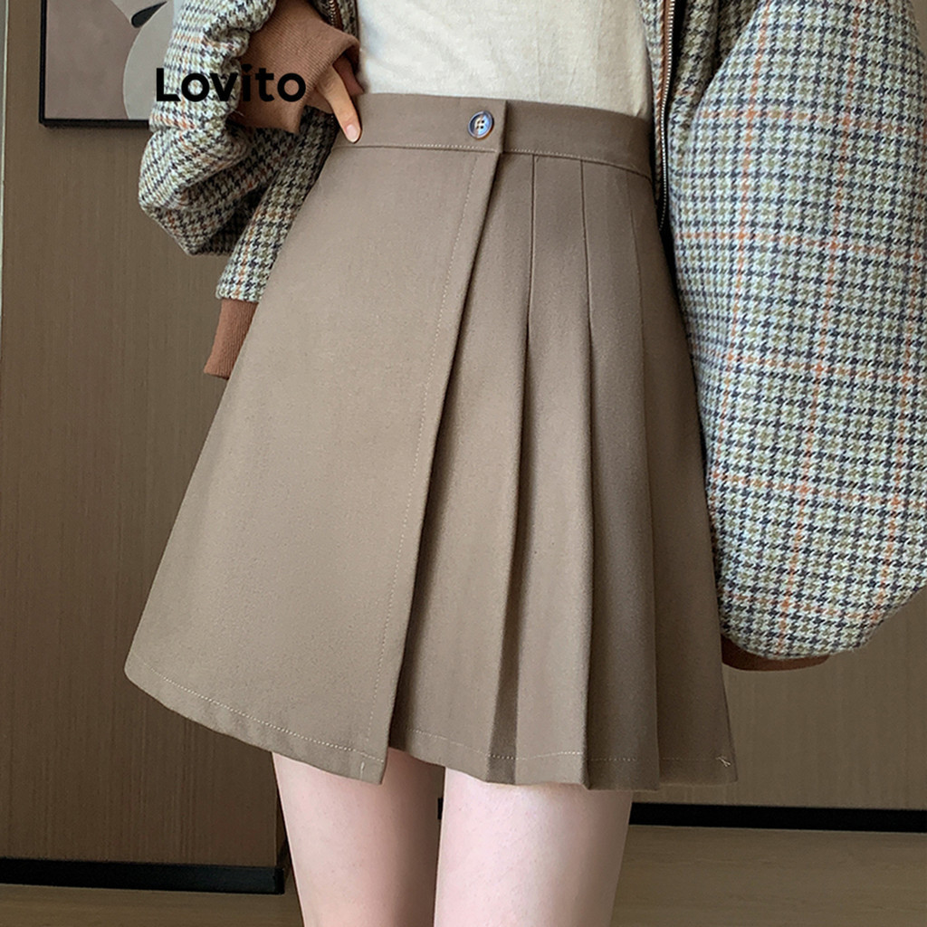 Lovito Váy thường ngày trơn viền bất đối xứng xếp li cho nữ l77ed088 (Nhiều màu)