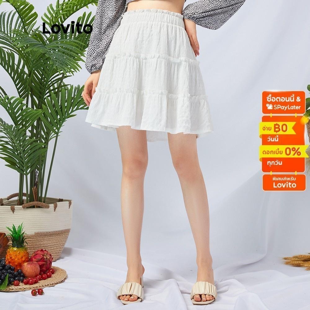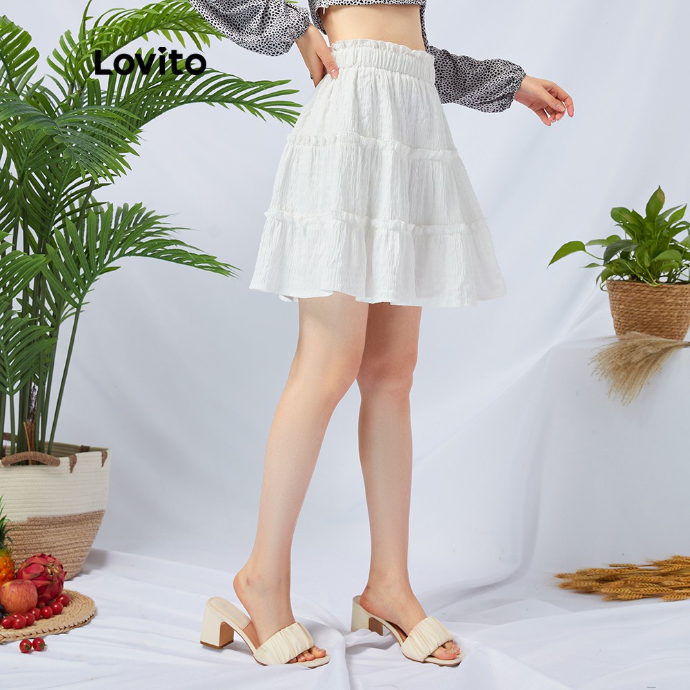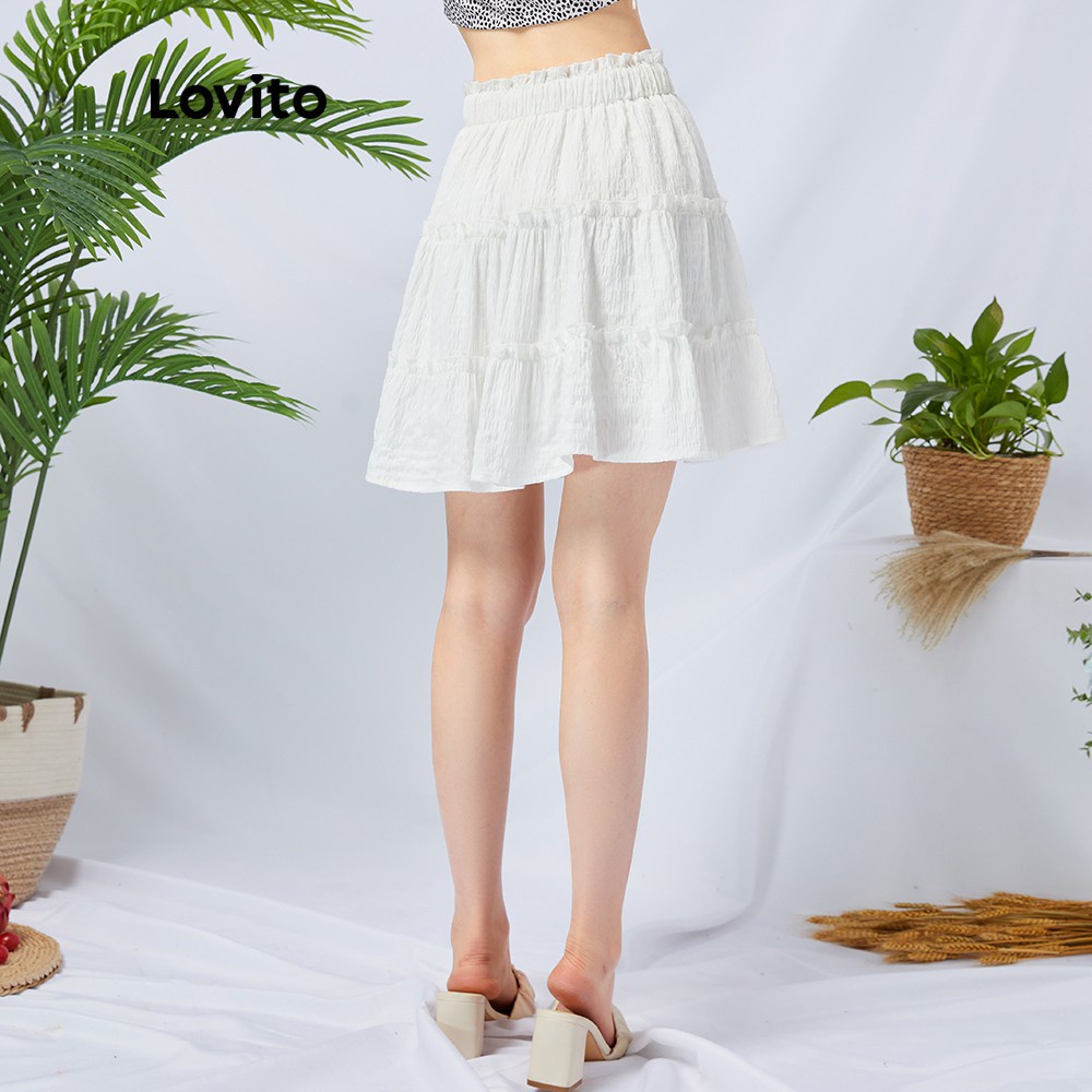 Lovito chân váy xếp ly có nút màu trơn thường ngày cho Nữ lne21243 (Nhiều màu)