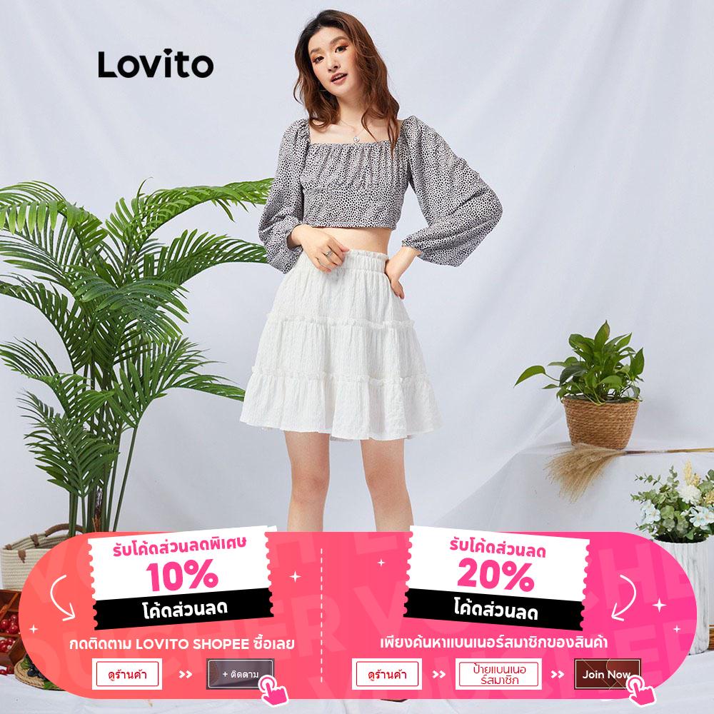 Lovito Chân váy midi đuôi có khóa kéo màu trơn thường ngày cho Nữ lne09201 (Hoa mai)