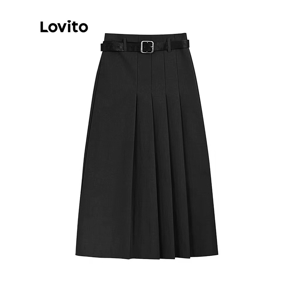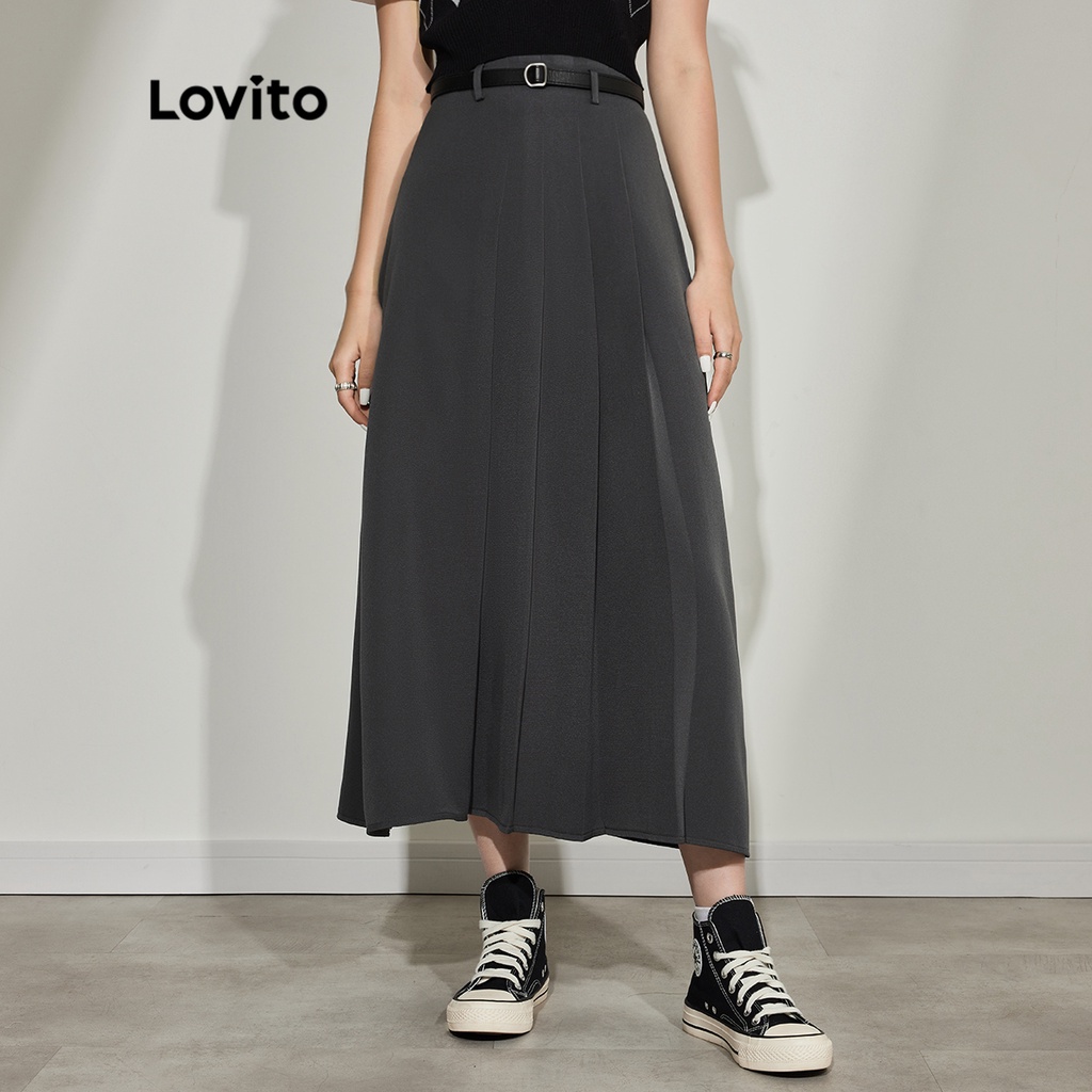 Lovito chân váy xếp ly có nút màu trơn thường ngày cho Nữ lne21243 (Nhiều màu)