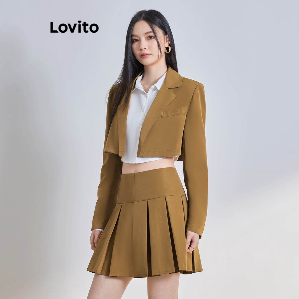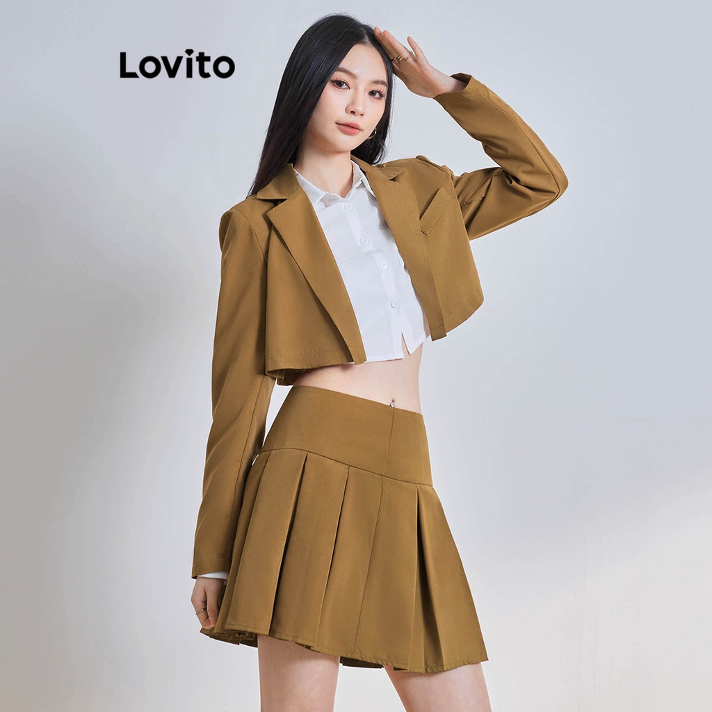 Lovito bộ quần dài xếp ly màu trơn thường ngày cho Nữ l62ed117 (Nhiều màu)