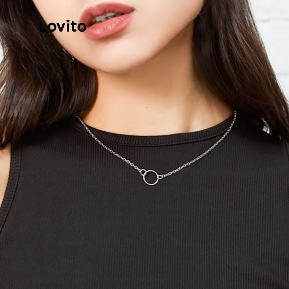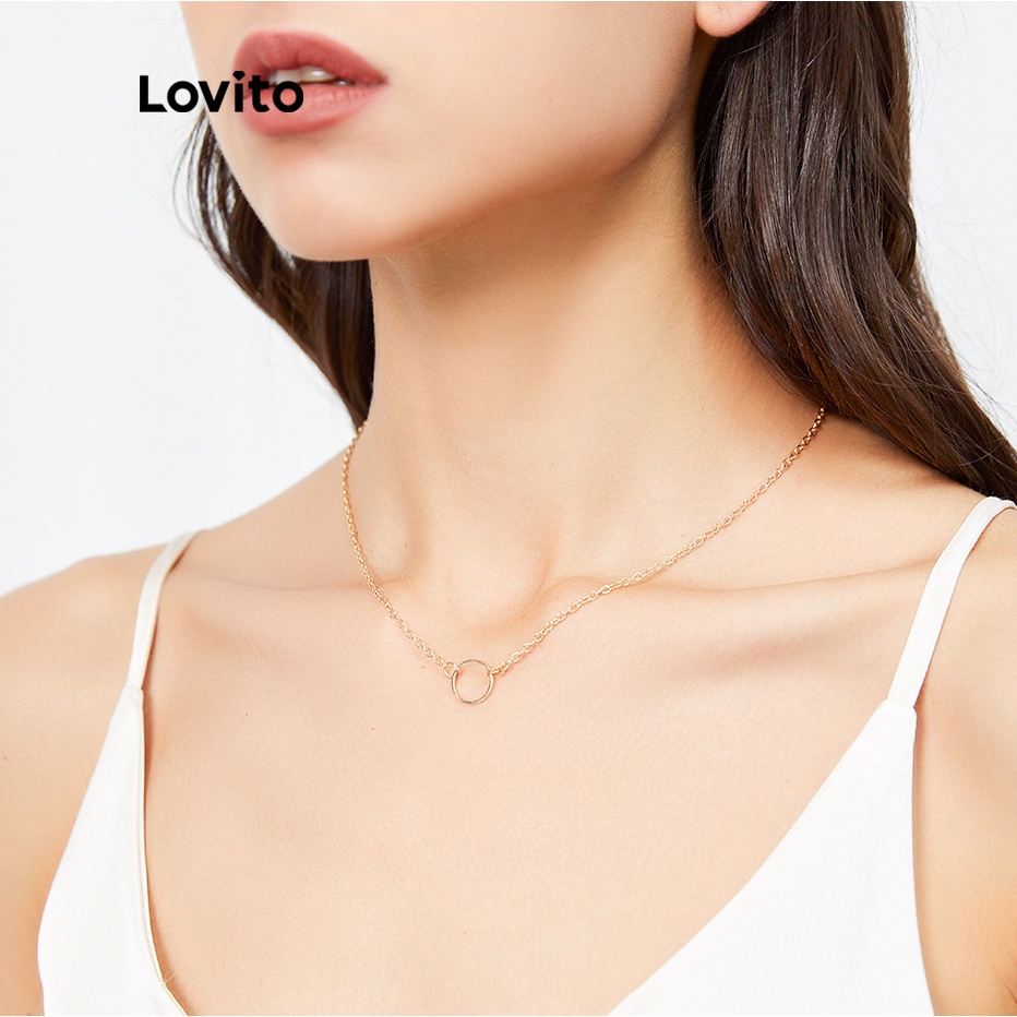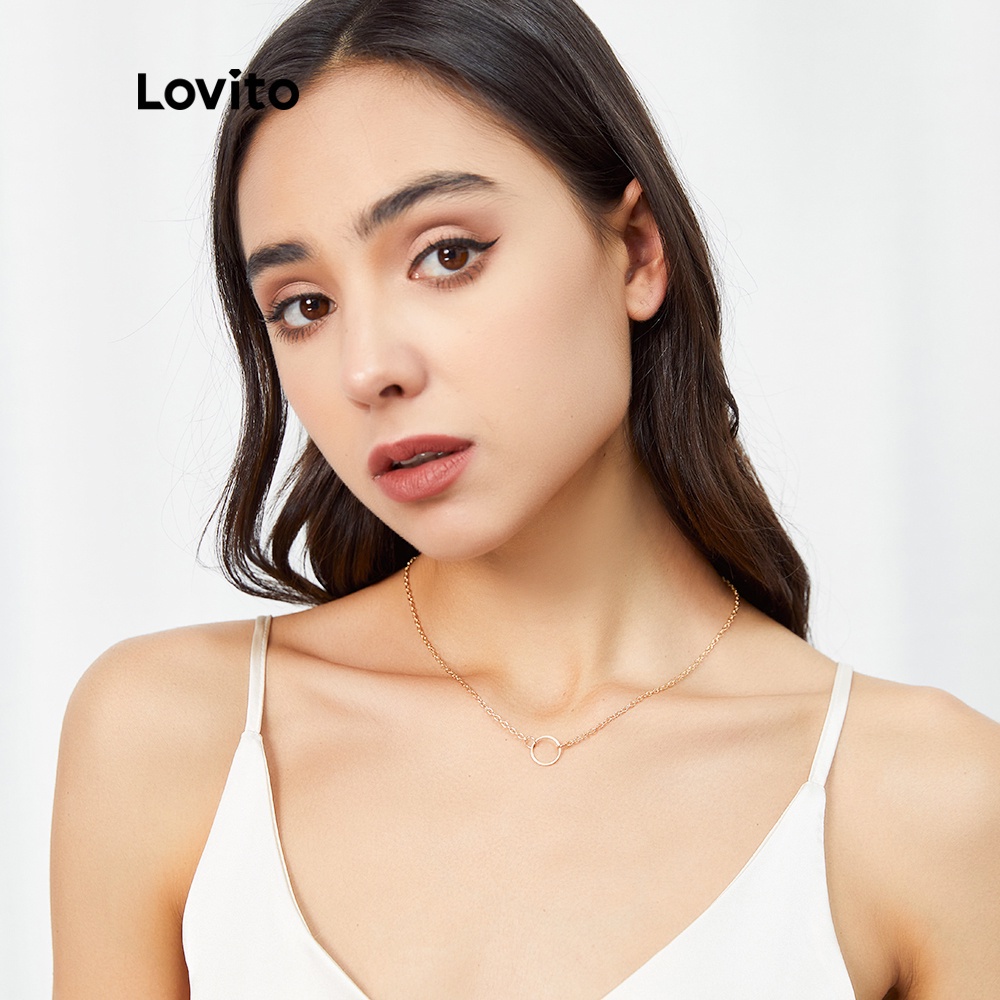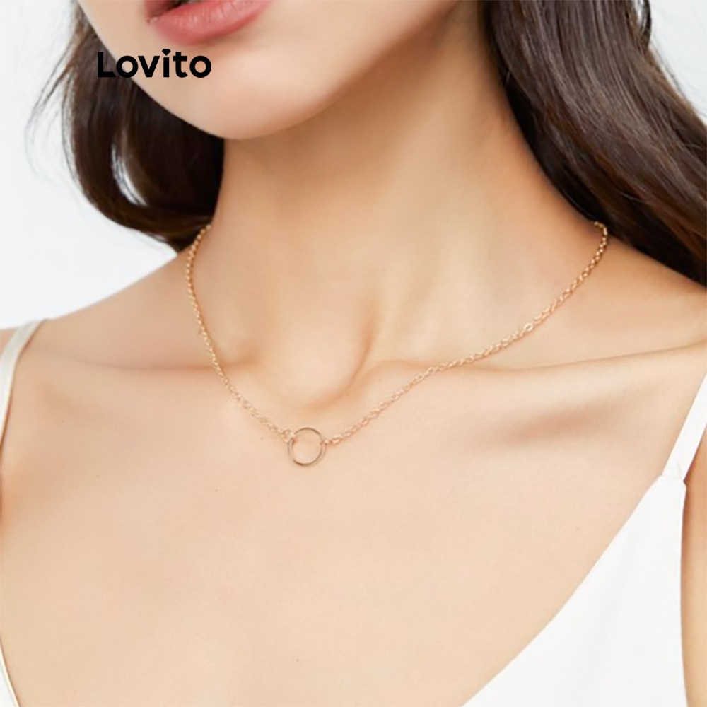 Lovito Vòng cổ mặt dây chuyền hình học thường ngày cho Nữ Vòng cổ mạ vàng cơ bản 18K hypoalou l66ad017 (Màu Vàng)