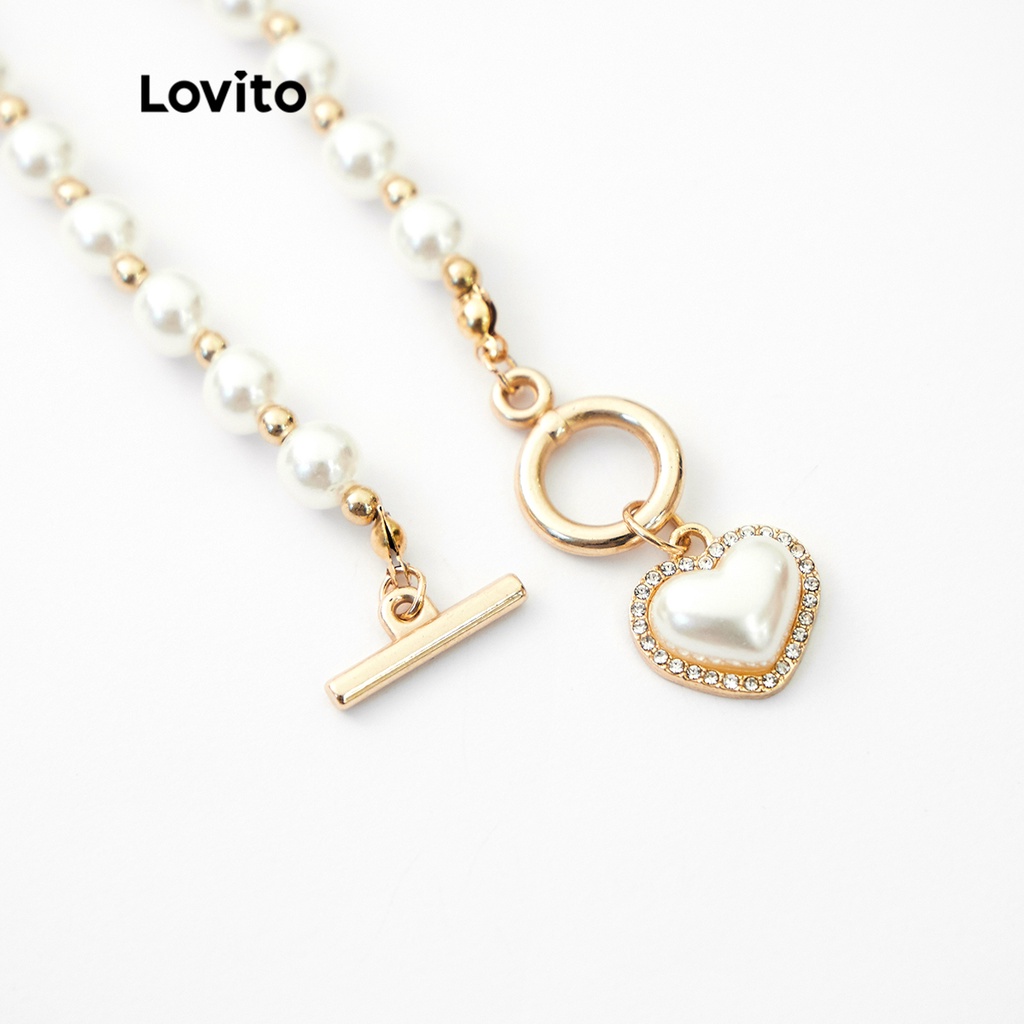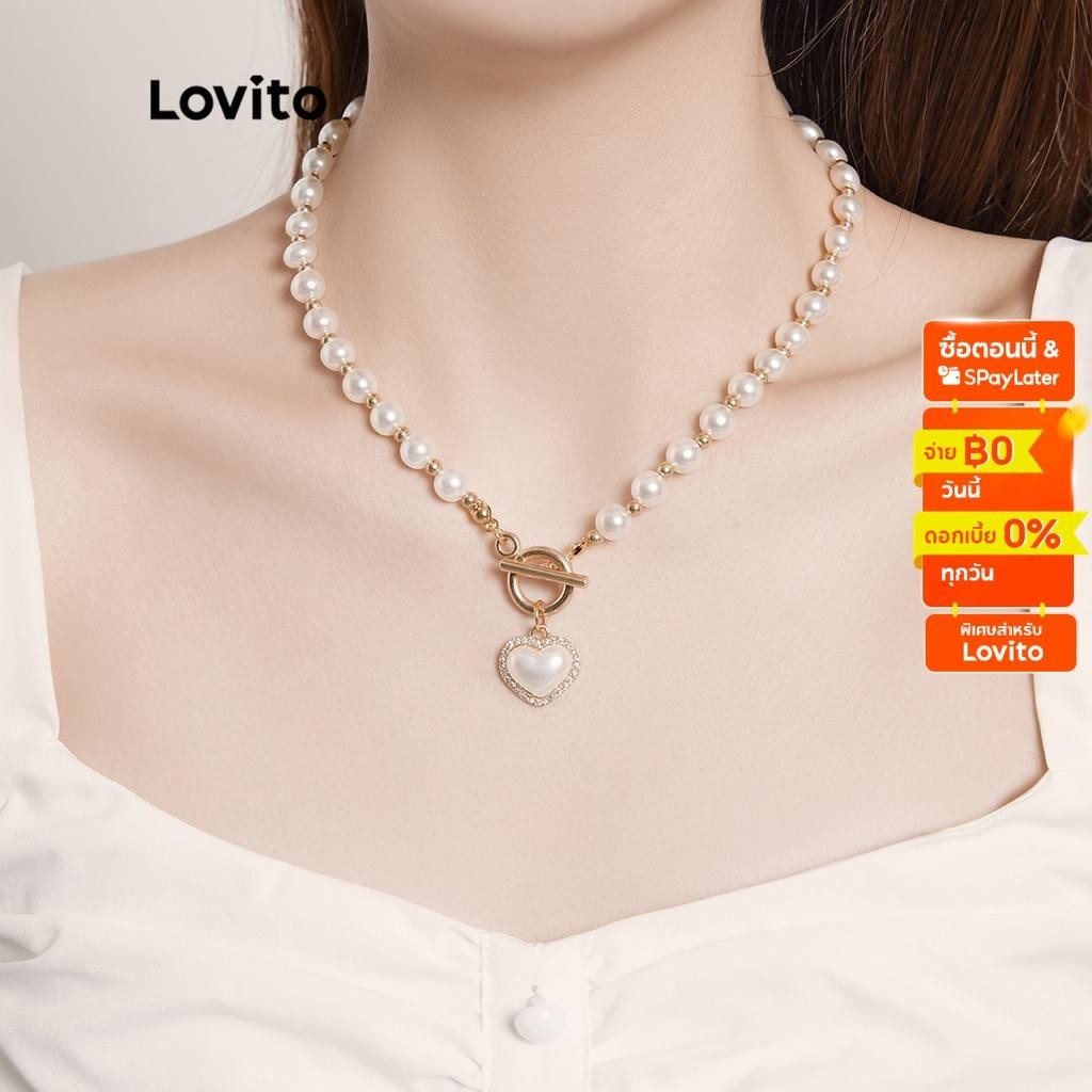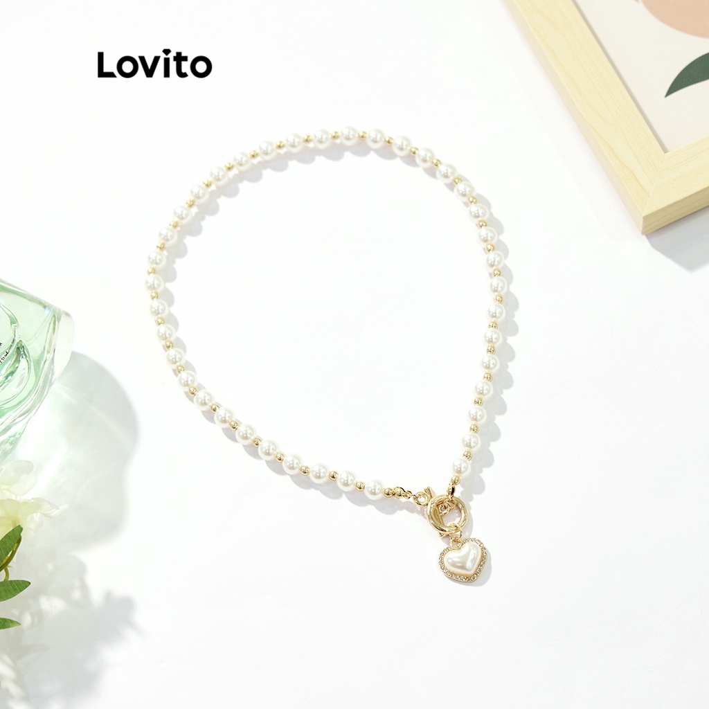 Lovito Vòng cổ nữ mặt dây chuyền hình trái tim với kim cương giả phong cách đơn giản lfa18074