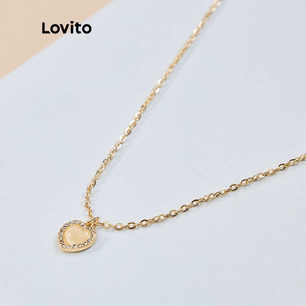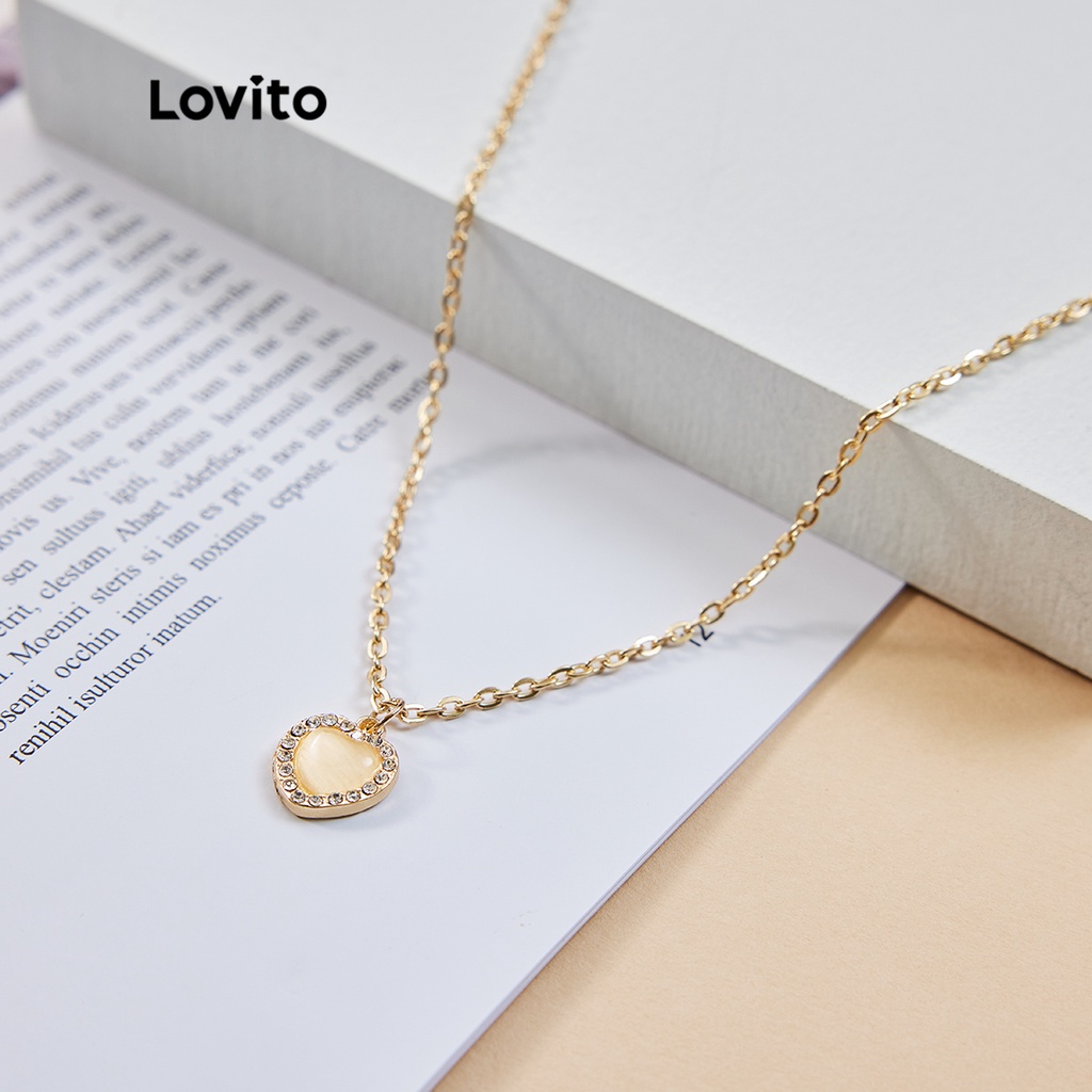 Lovito Vòng cổ mặt dây chuyền ngọc trai hình trái tim thường ngày cho Nữ lfa08089 (màu vàng kim)