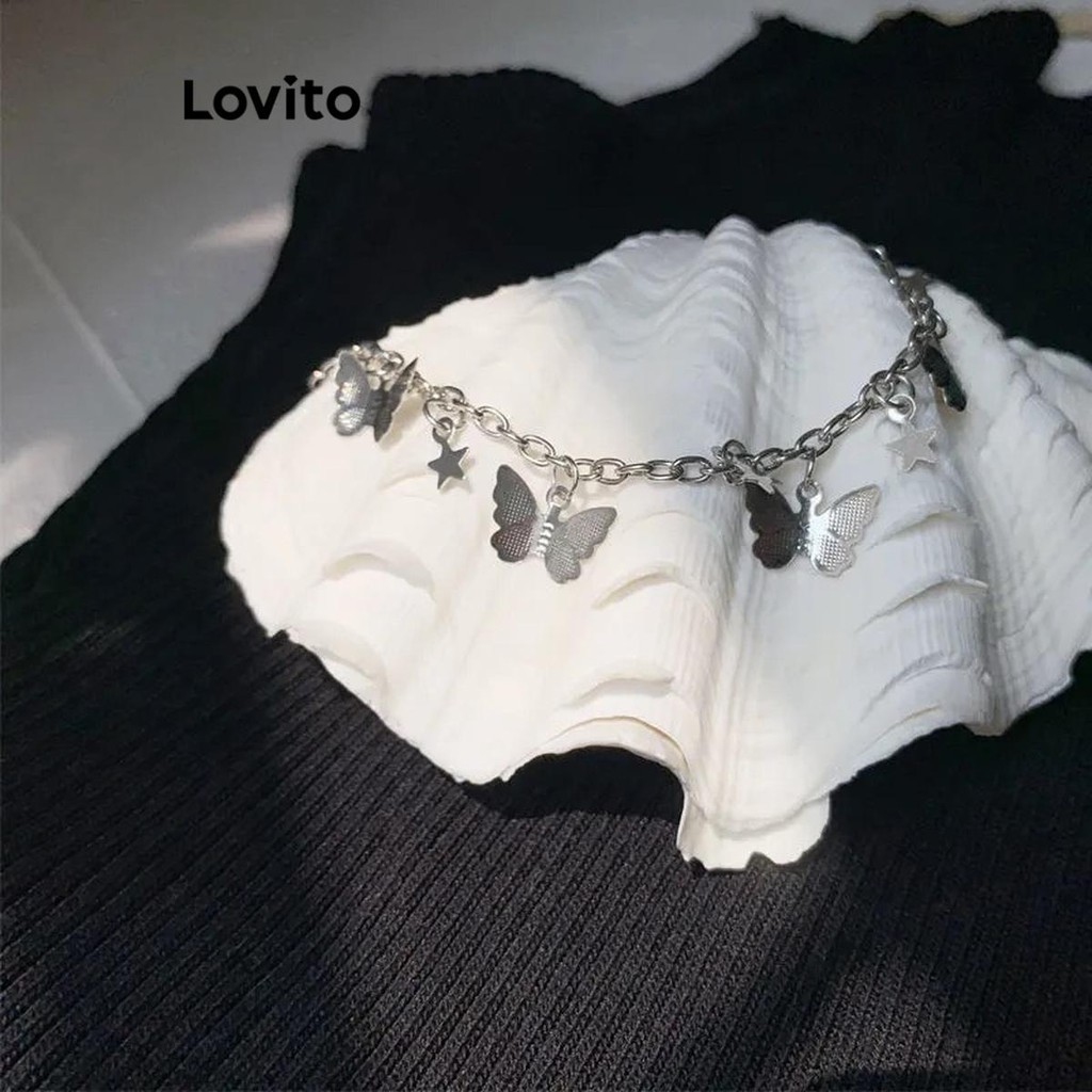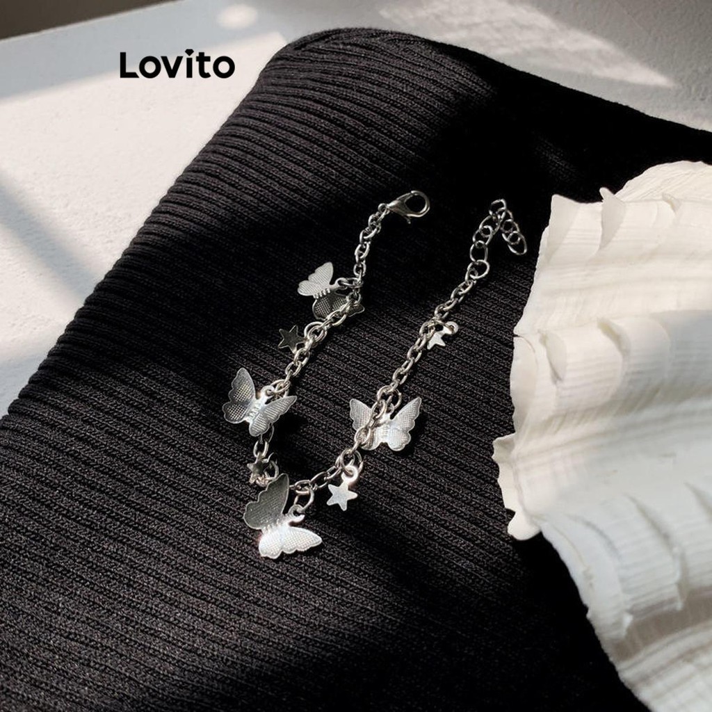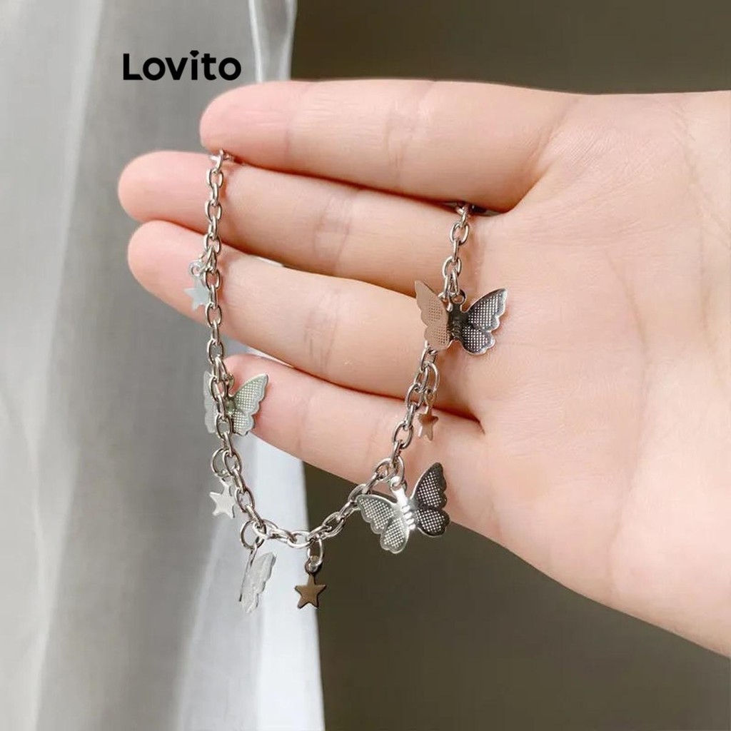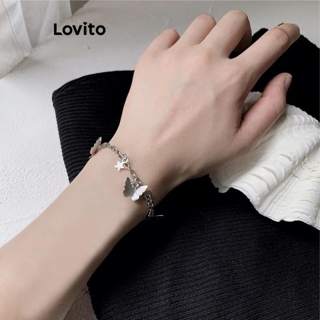 Lovito Vòng tay nữ chất liệu kim loại phong cách đơn giản dễ thương lfa12196