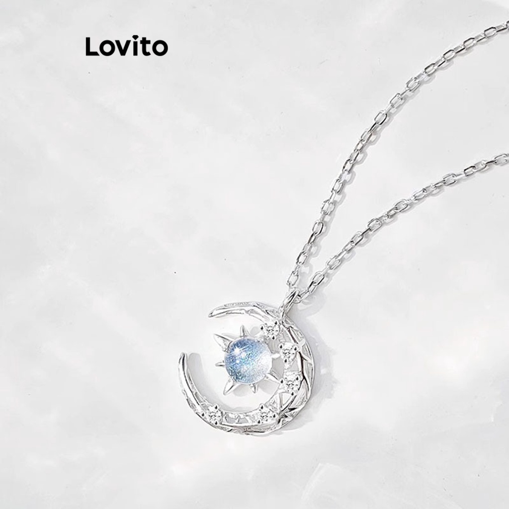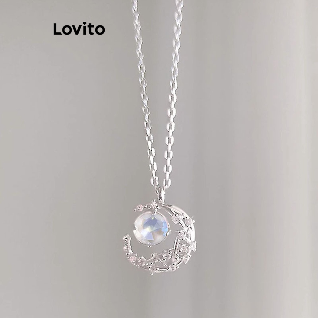 Lovito Vòng cổ dây chuyền Kim cương giả màu trơn thanh lịch cho nữ lfa08646 (màu bạc)