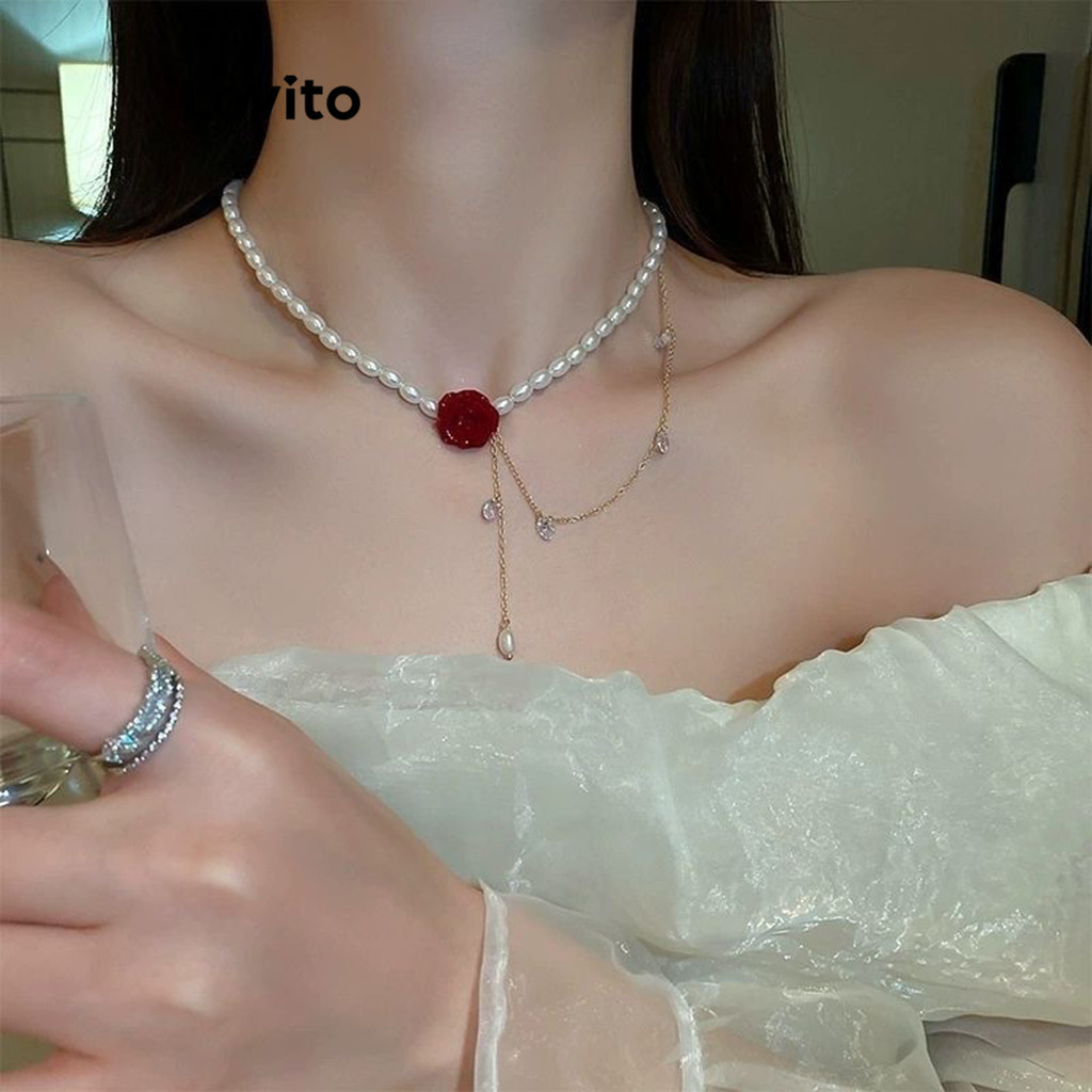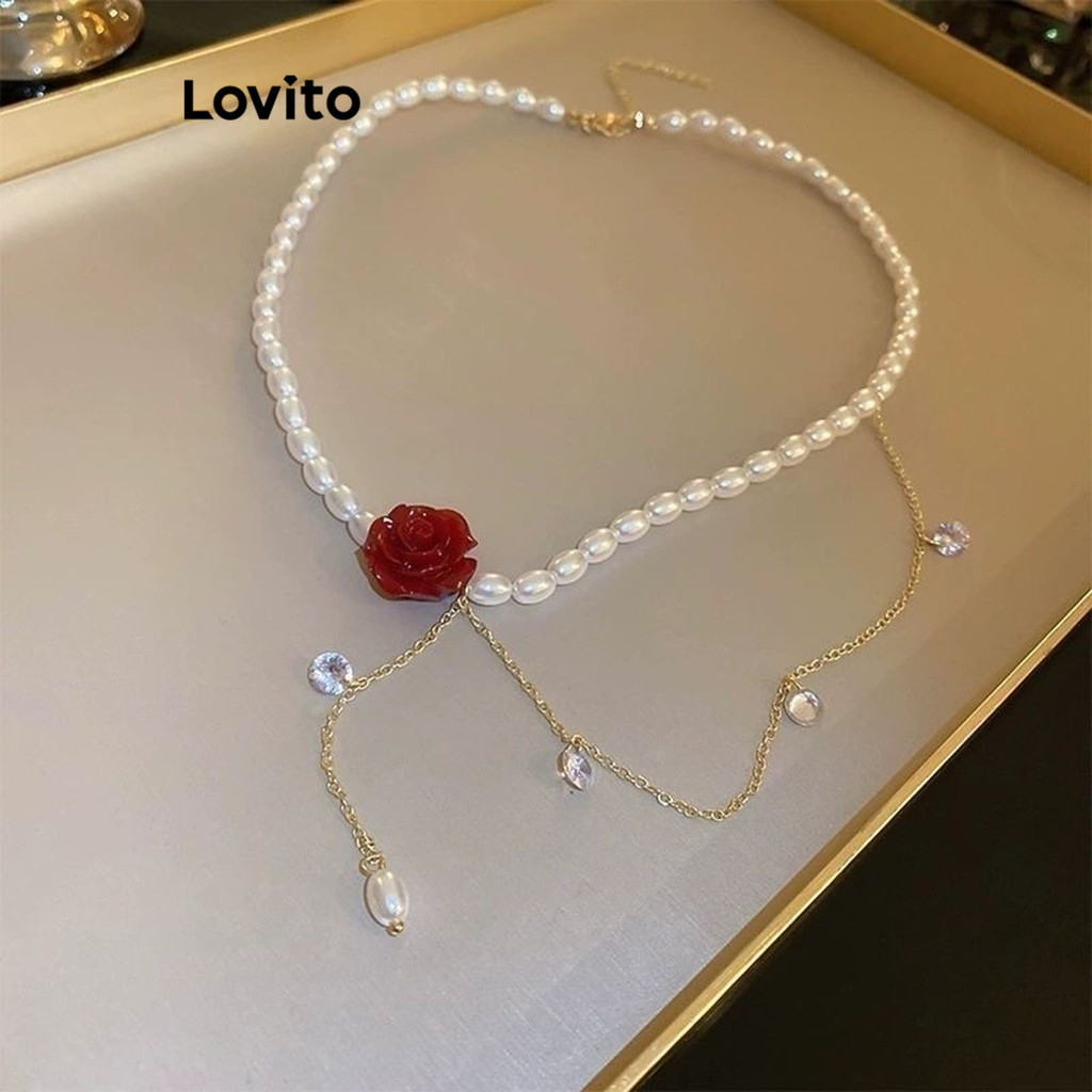 Lovito Vòng cổ choker ngọc trai giả phong cách thanh lịch l17m155 (Màu Trắng)