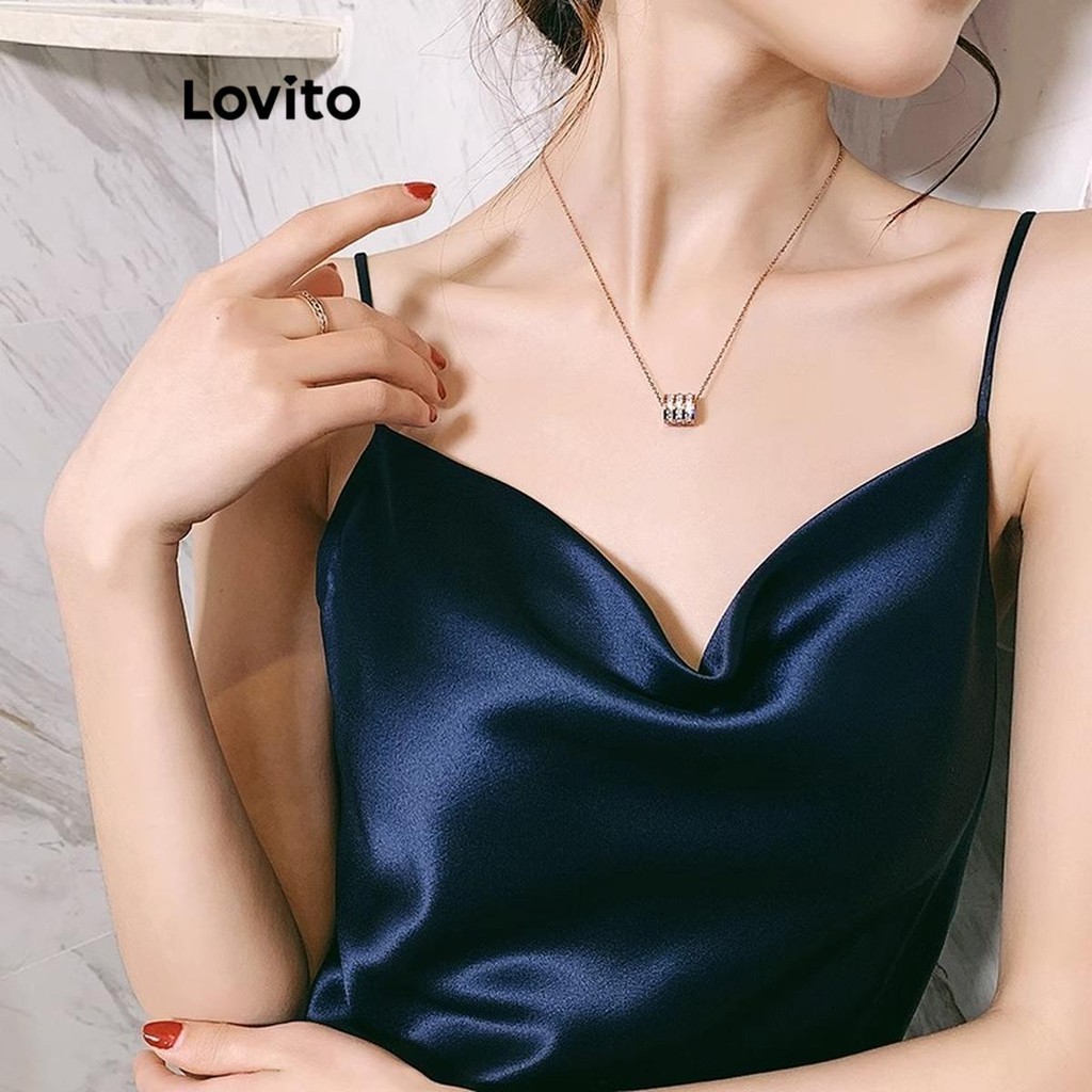 Lovito Vòng cổ dây chuyền Kim cương giả màu trơn thanh lịch cho nữ lfa08646 (màu bạc)