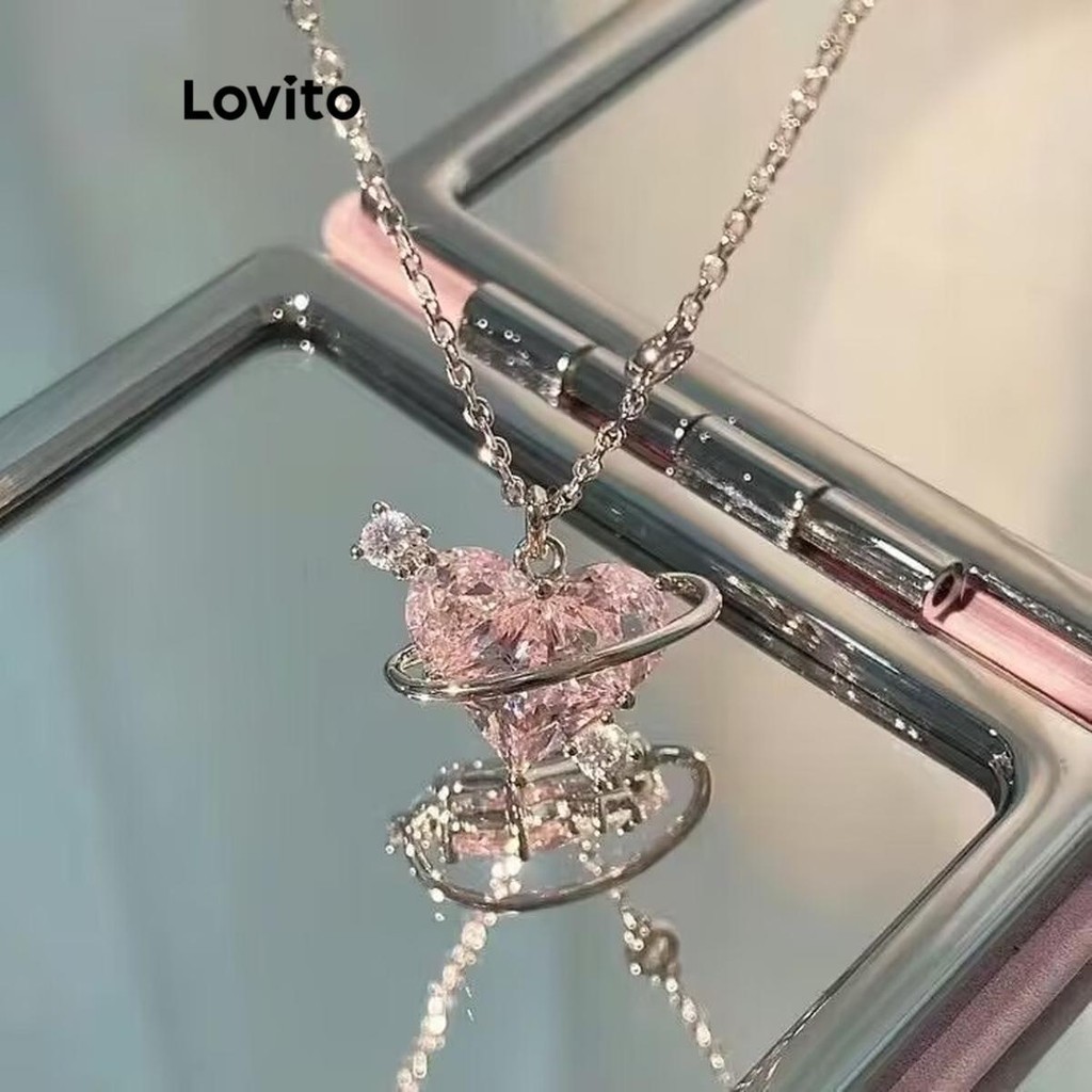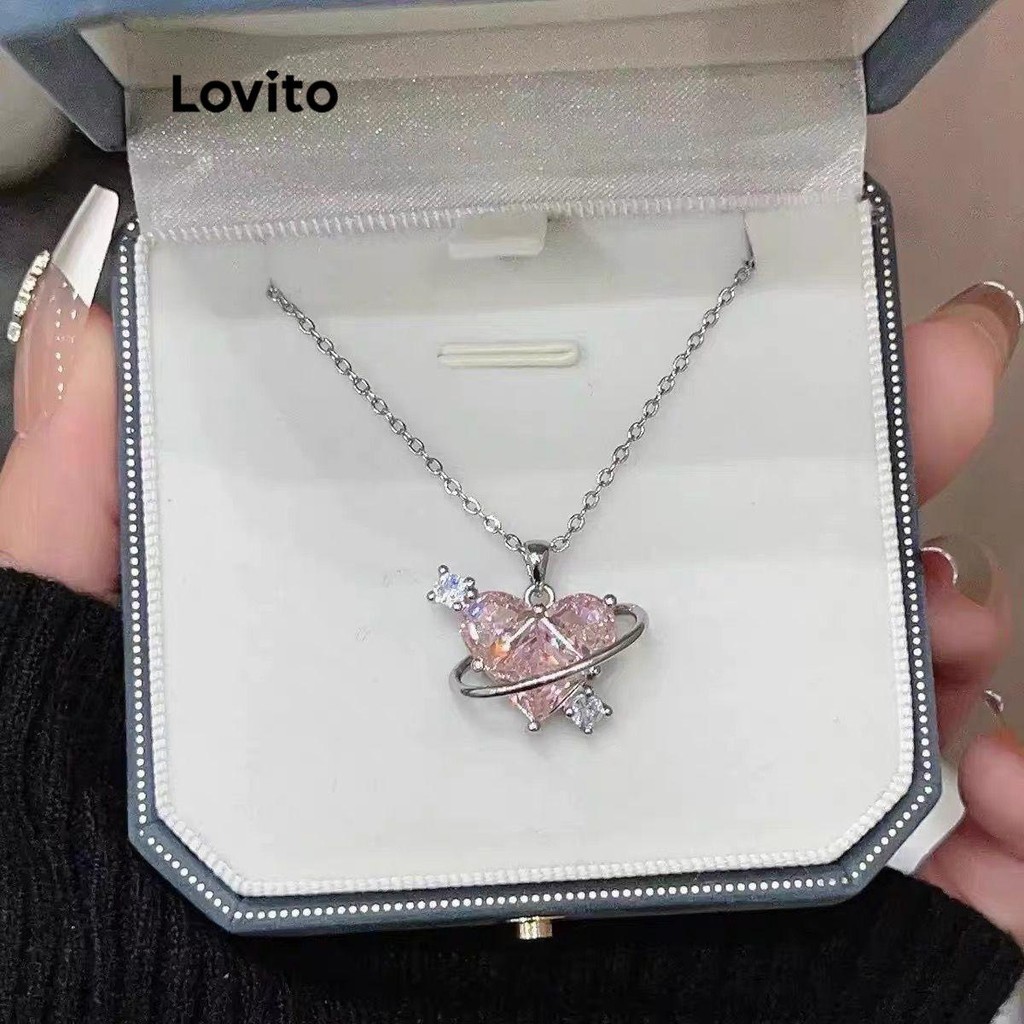 Lovito Vòng cổ nữ mặt dây chuyền hình trái tim với kim cương giả phong cách đơn giản lfa18074