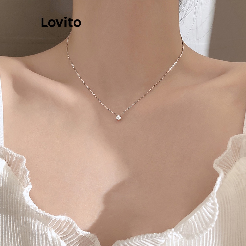 Lovito lfa12012 Vòng cổ mặt dây chuyền đính đá hình hoa thường ngày cho Nữ