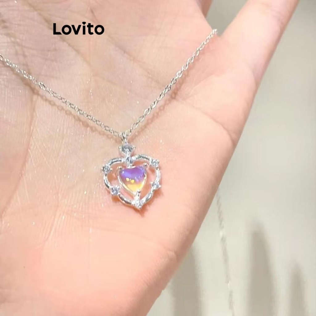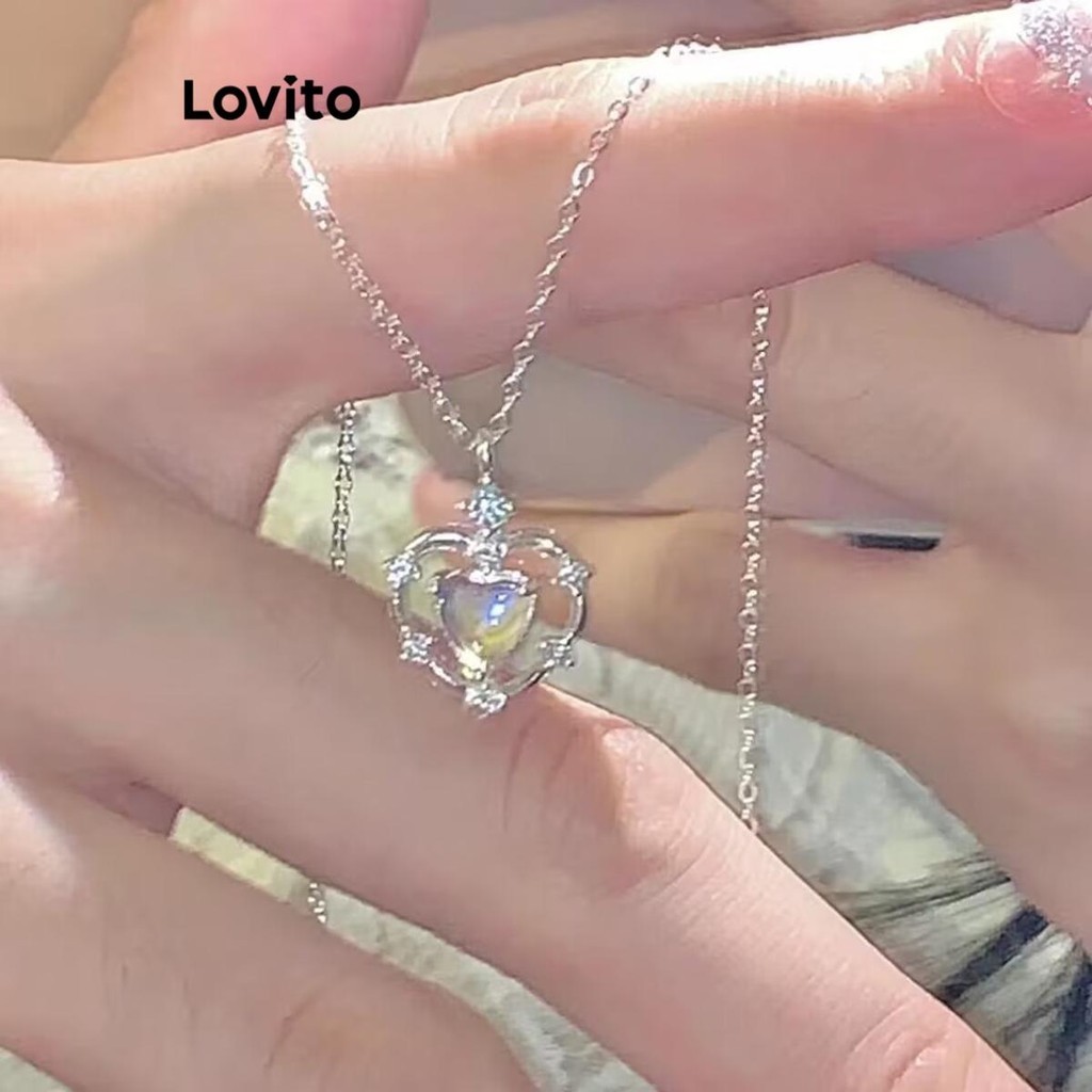 Lovito Vòng cổ nữ mặt dây chuyền hình trái tim với kim cương giả phong cách đơn giản lfa18074