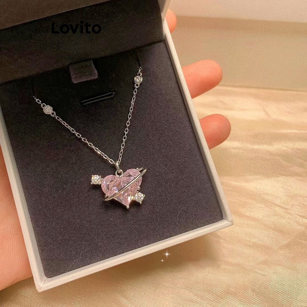 Lovito Vòng cổ nữ hình trái tim phong cách thường ngày lna28109 (Trắng/Hồng)