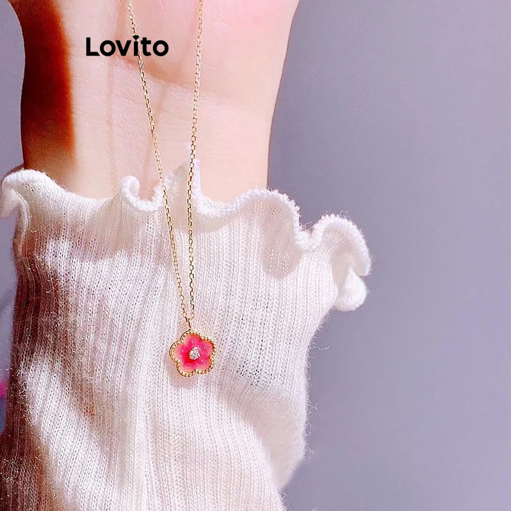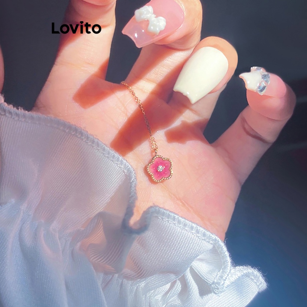 Lovito Vòng cổ nữ hình trái tim phong cách thường ngày lna28109 (Trắng/Hồng)