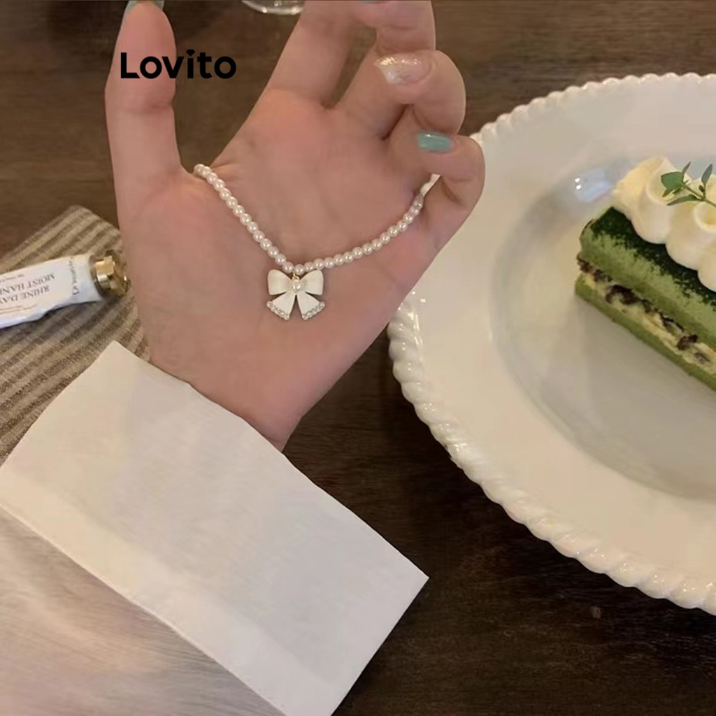 Lovito Vòng cổ ngọc trai thắt nơ trơn thường ngày cho Nữ l63ad018 (Màu Trắng)