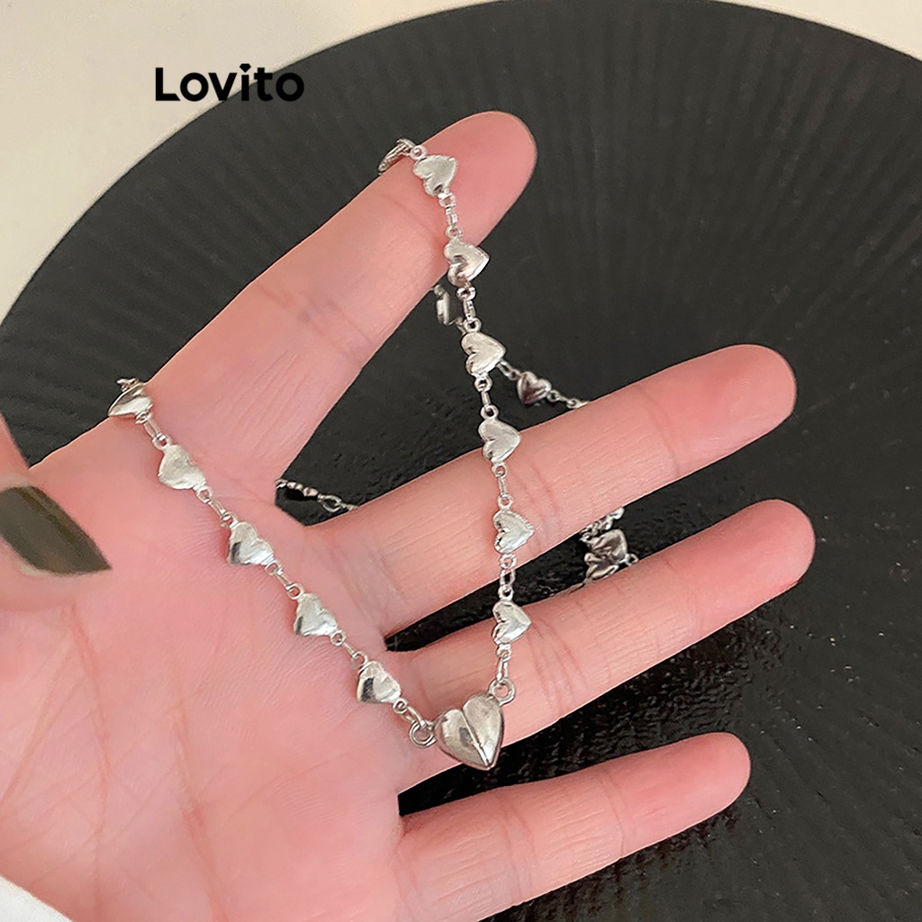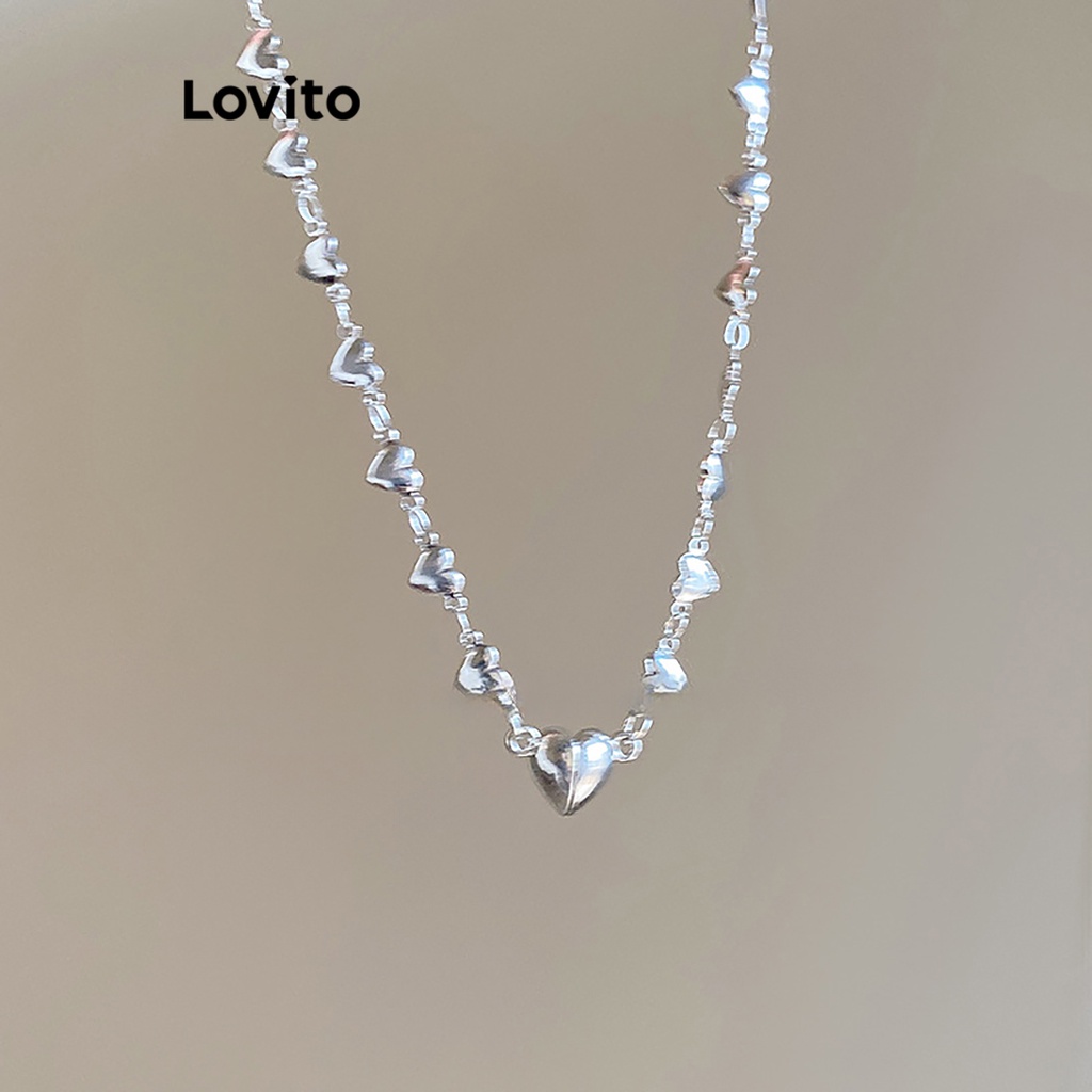 Lovito Vòng Cổ Trái Tim Dễ thương cho nữ có hạt màu trơn thường ngày lfa13387