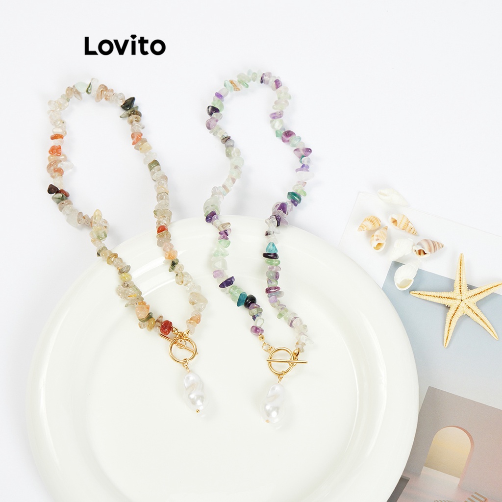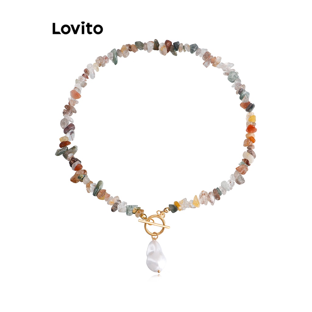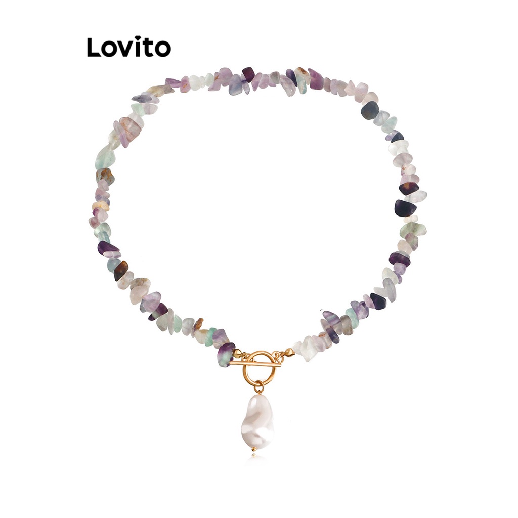 Lovito Vòng cổ nữ cắt kim cương giả trơn phong cách thường ngày lfa13396