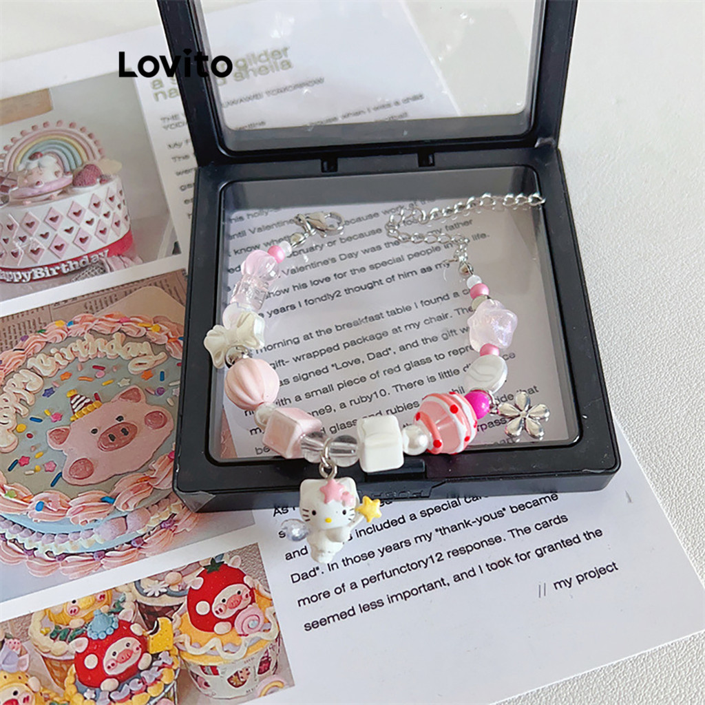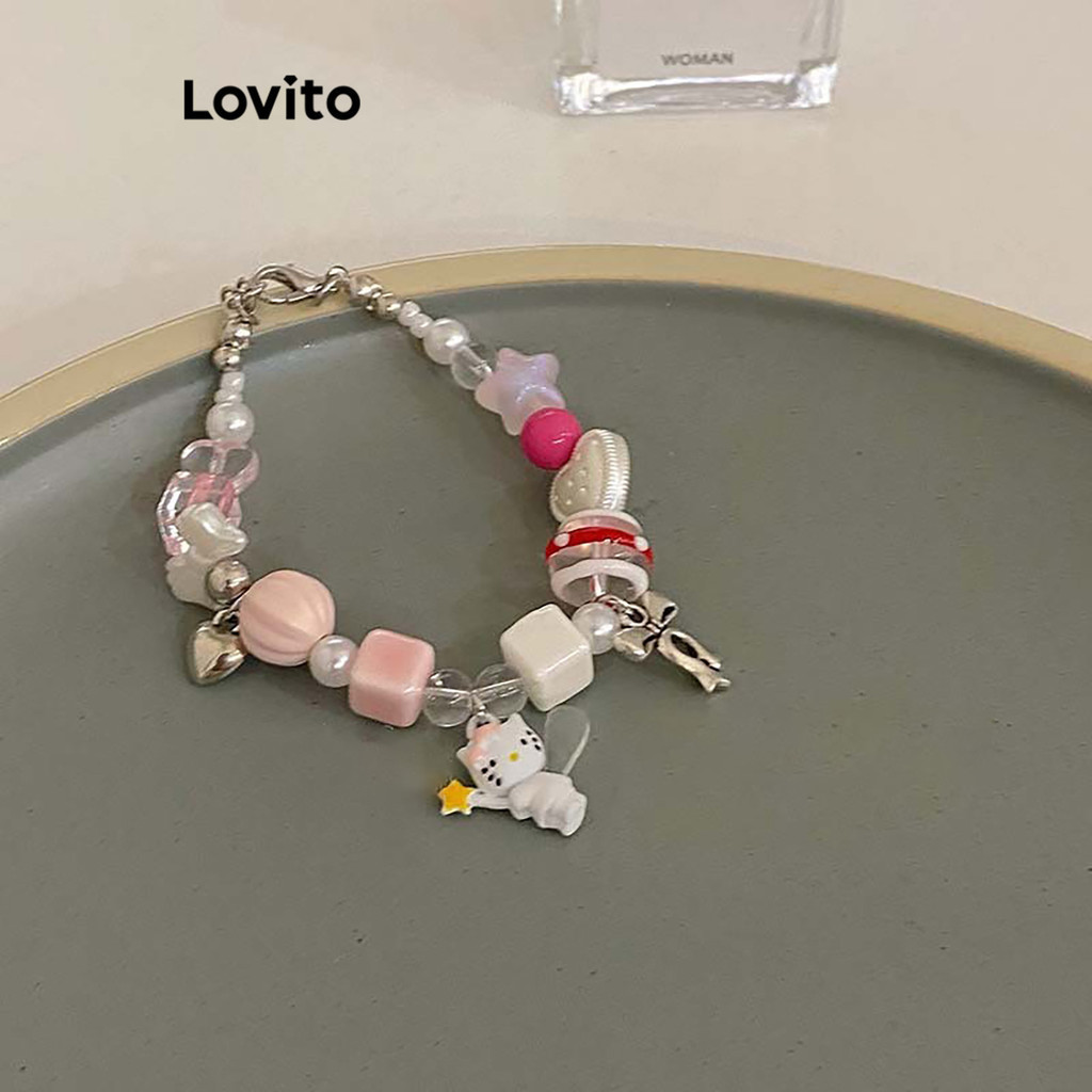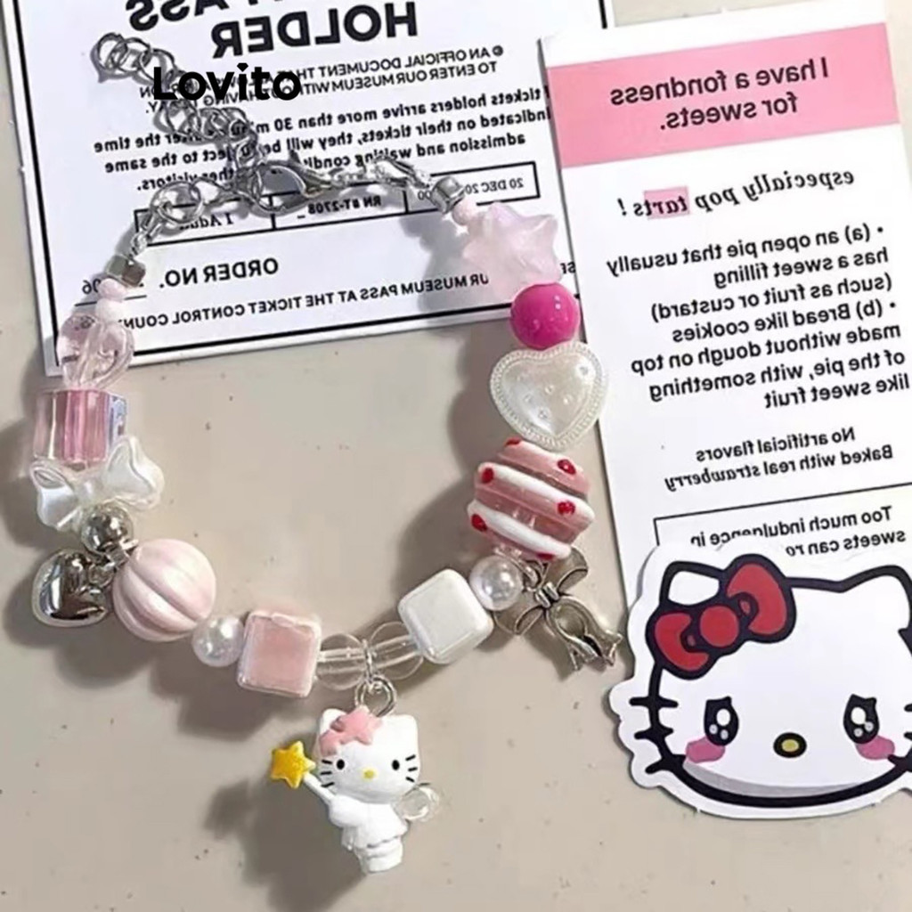 Lovito Vòng tay nữ pha lê Sanrio hoạt hình đính cườm màu trơn đơn giản lfa13421