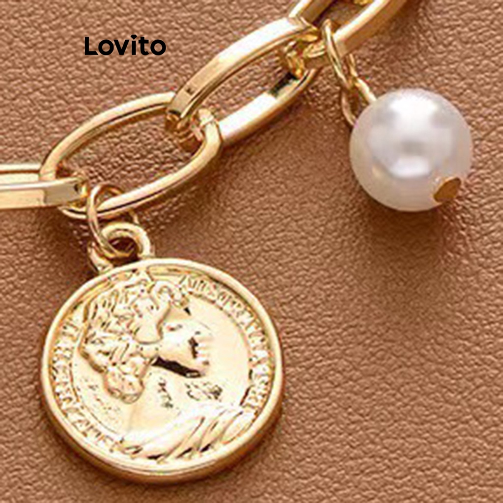 Lovito Vòng tay nữ đính cườm ngọc trai màu trơn thường ngày thời trang lfa18680
