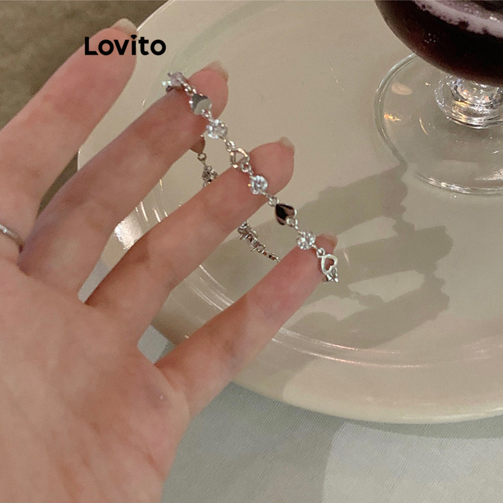 Lovito Vòng Tay Charm Đính Đá Màu Trơn thường ngày cho Nữ lfa03231 (màu bạc)
