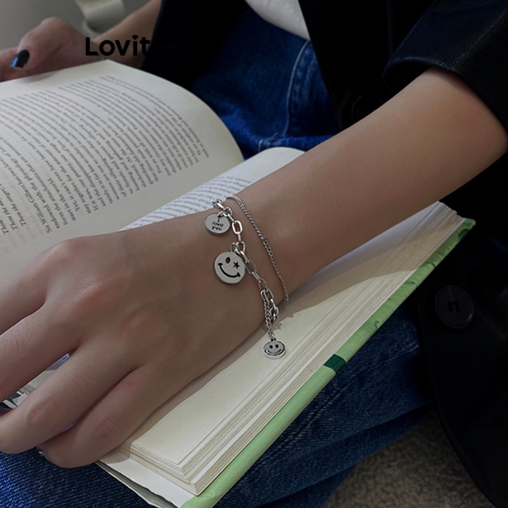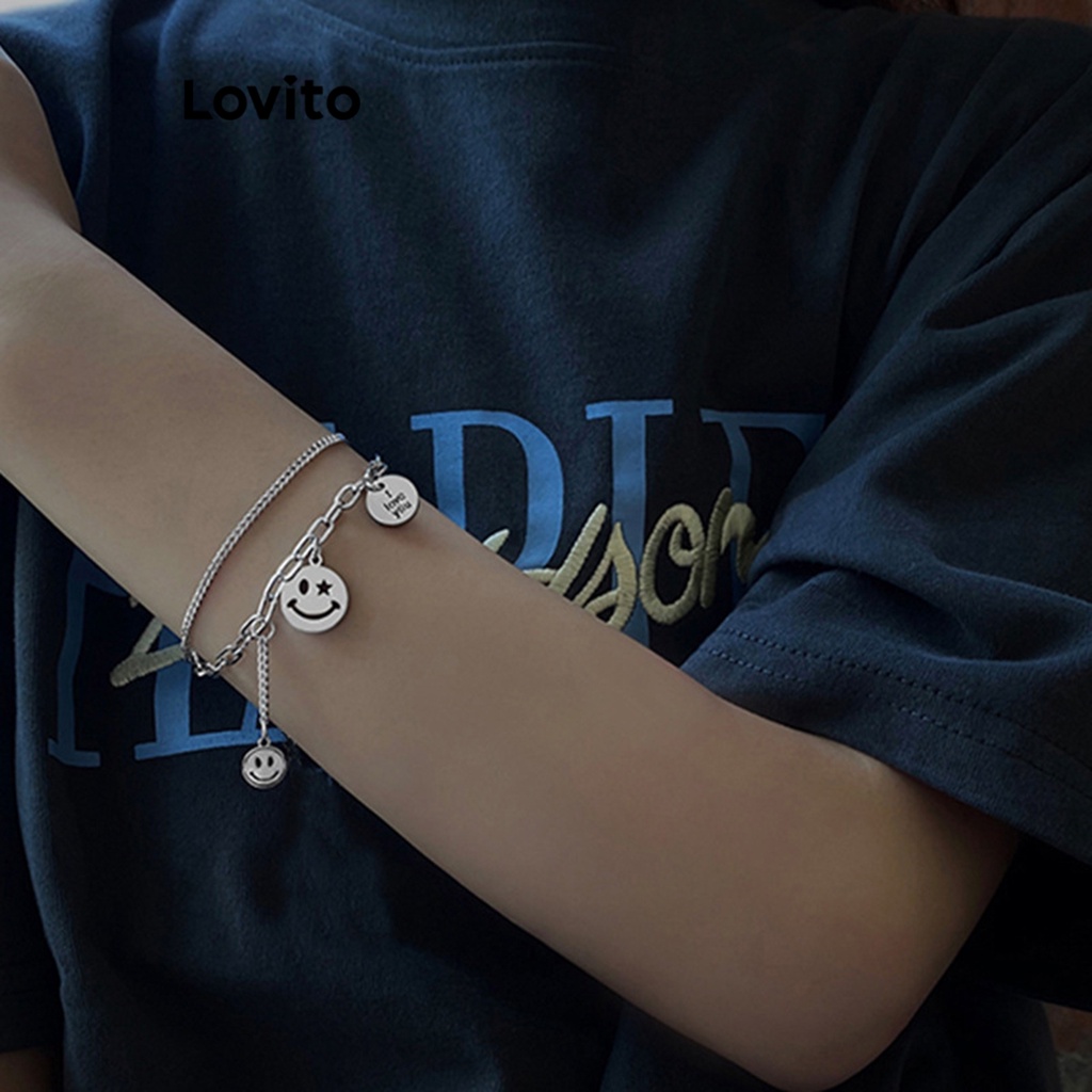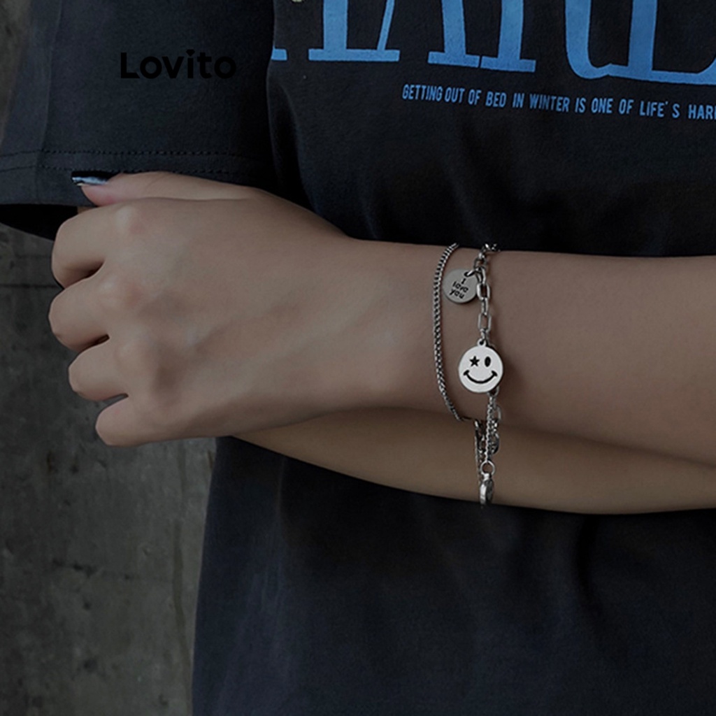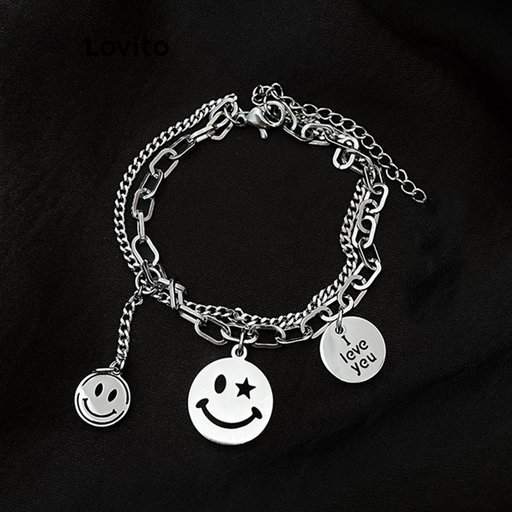 Lovito Vòng tay nữ chất liệu kim loại phong cách đơn giản dễ thương lfa12196