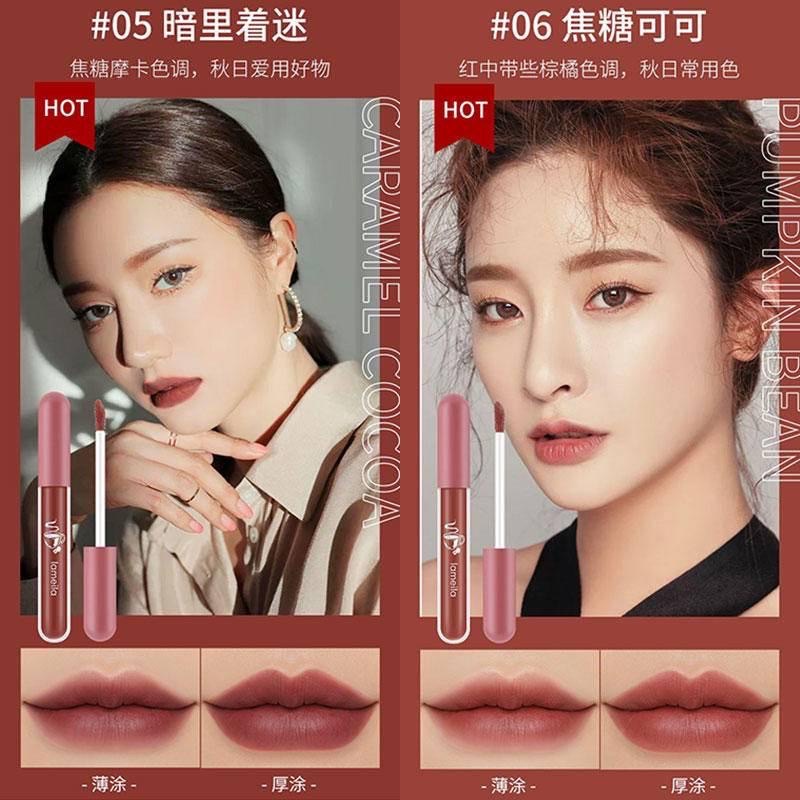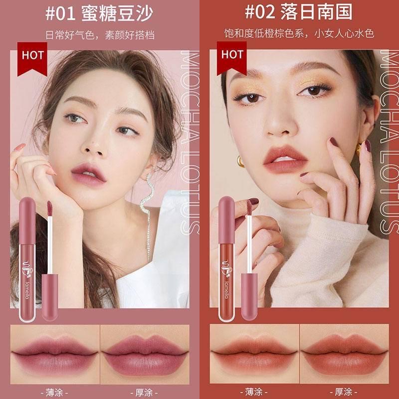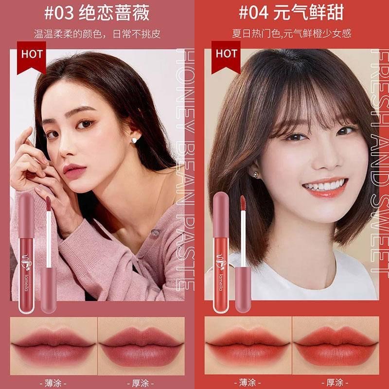ใหม่ล่าสุด lameila ลิปกำมะหยี่ ลิปซอฟท์แมท สไตล์สาวเกาหลี แพ็คเกจน่ารักตัวเนื้อลิป เป็นเนื้อกำมะหยี่ เม็ดสีแน่น สีคมชัด สีสวยสดใส