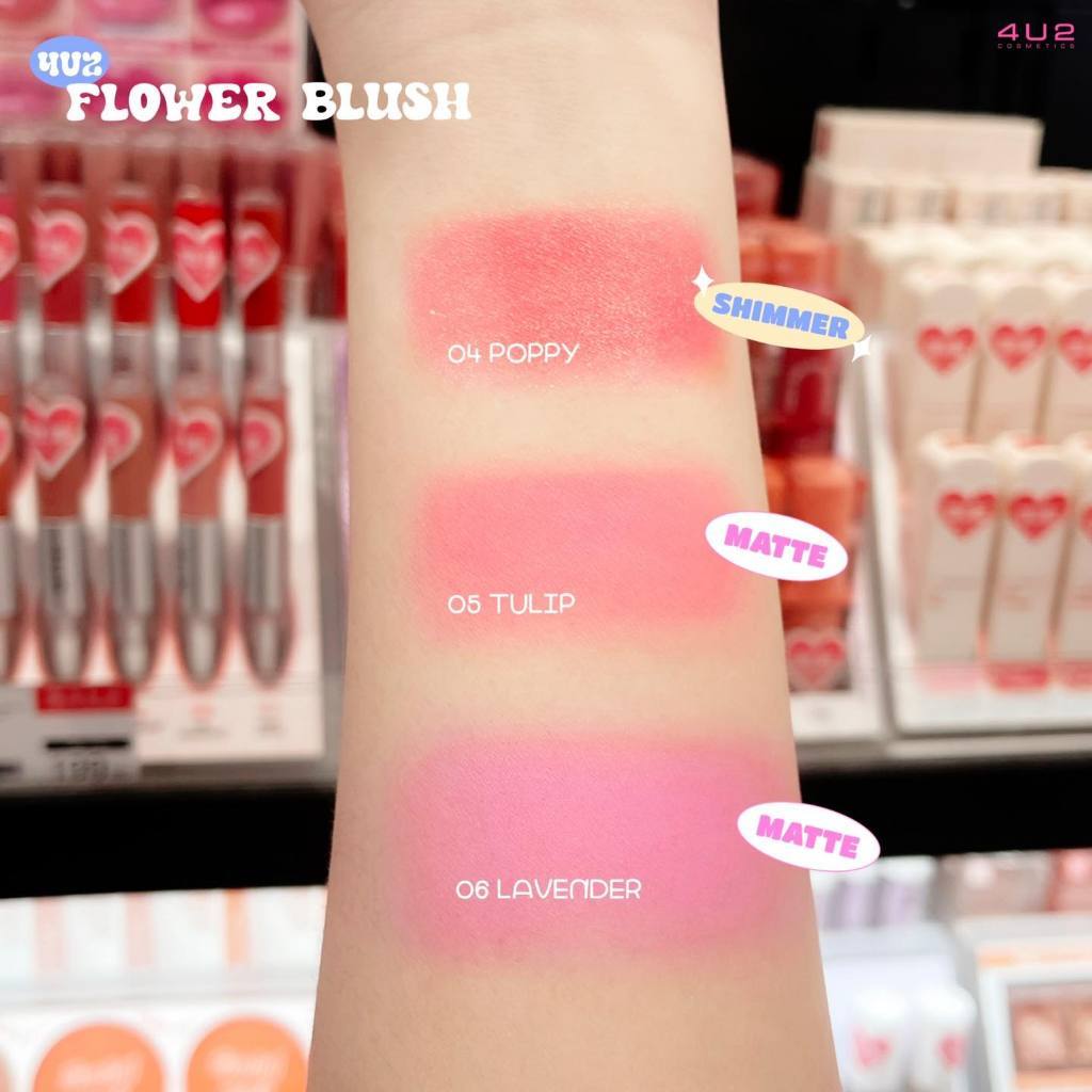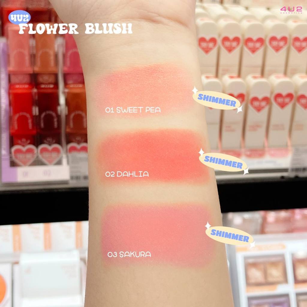 4U2 Flower Blushบลัชดอกไม้สุดโซคิ้วท์ เนื้อนุ่มเนียนละเอียด เม็ดสีชัด ติดทน เกลี่ยง่าย มีทั้งเนื้อแมทท์และชิมเมอร์วิ้งๆด้วยน้าา มอบความประกายแวววาวเล่นแสงให้แก้มเมย์โคโคดูสวยน่ามองฝุดๆ อีกทั้งยังเพิ่มสีสันให้ทั้งตาและแก้มดูสดใสตลอดทั้งวันอีกด้วยค่าา ปังปุริเย่ไปเล้ยย