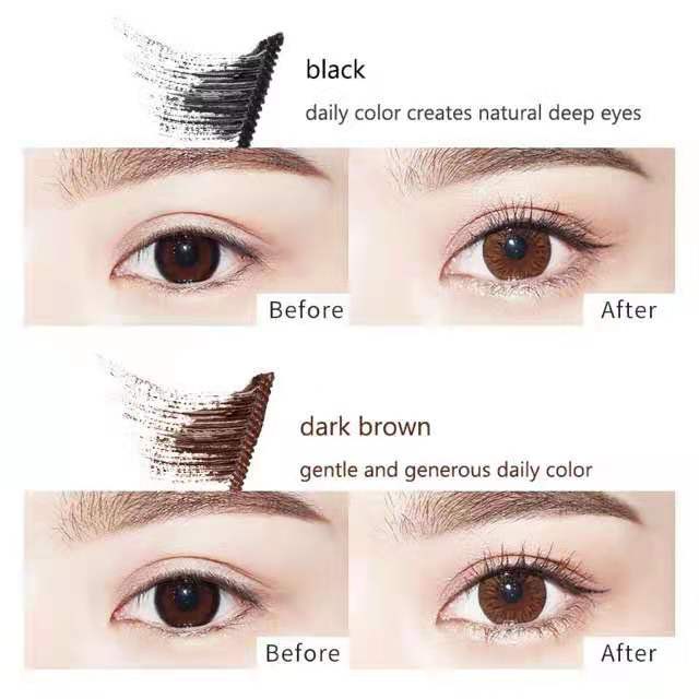 Mascara không thấm nước lâu trôi, lông mi dài không dễ rơi, Đầu cọ dài và mỏng, mềm mại tự nhiên.
