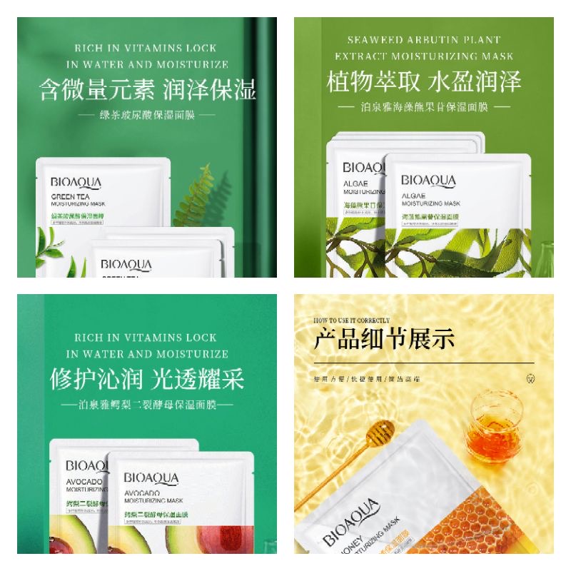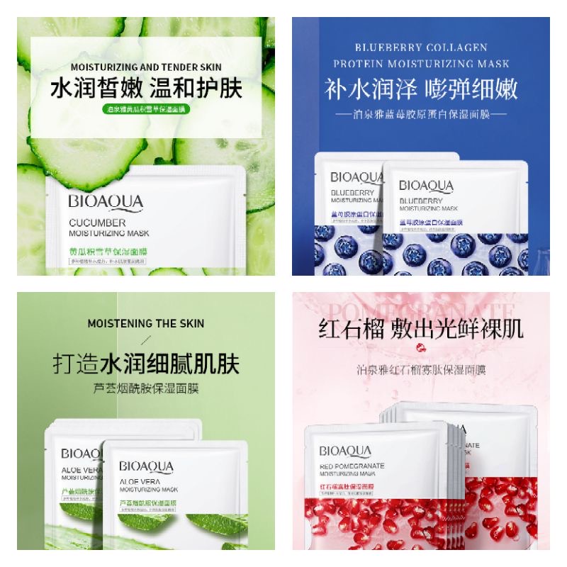 มาร์คหน้า แผ่นมาส์ก Bioaqua สูตรสารสกัดจากพืชและไฮยาลูรอน บำรุงผิวหน้าครบๆ ขนาด 25 กรัมBioaqua 8 สูตร แบบแผ่น ขนาด 25 กรัม บรรจุ 1 แผ่น ต่อซอง