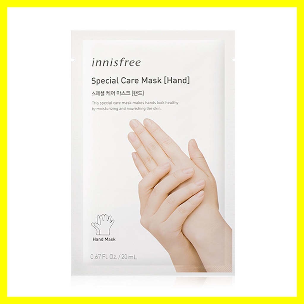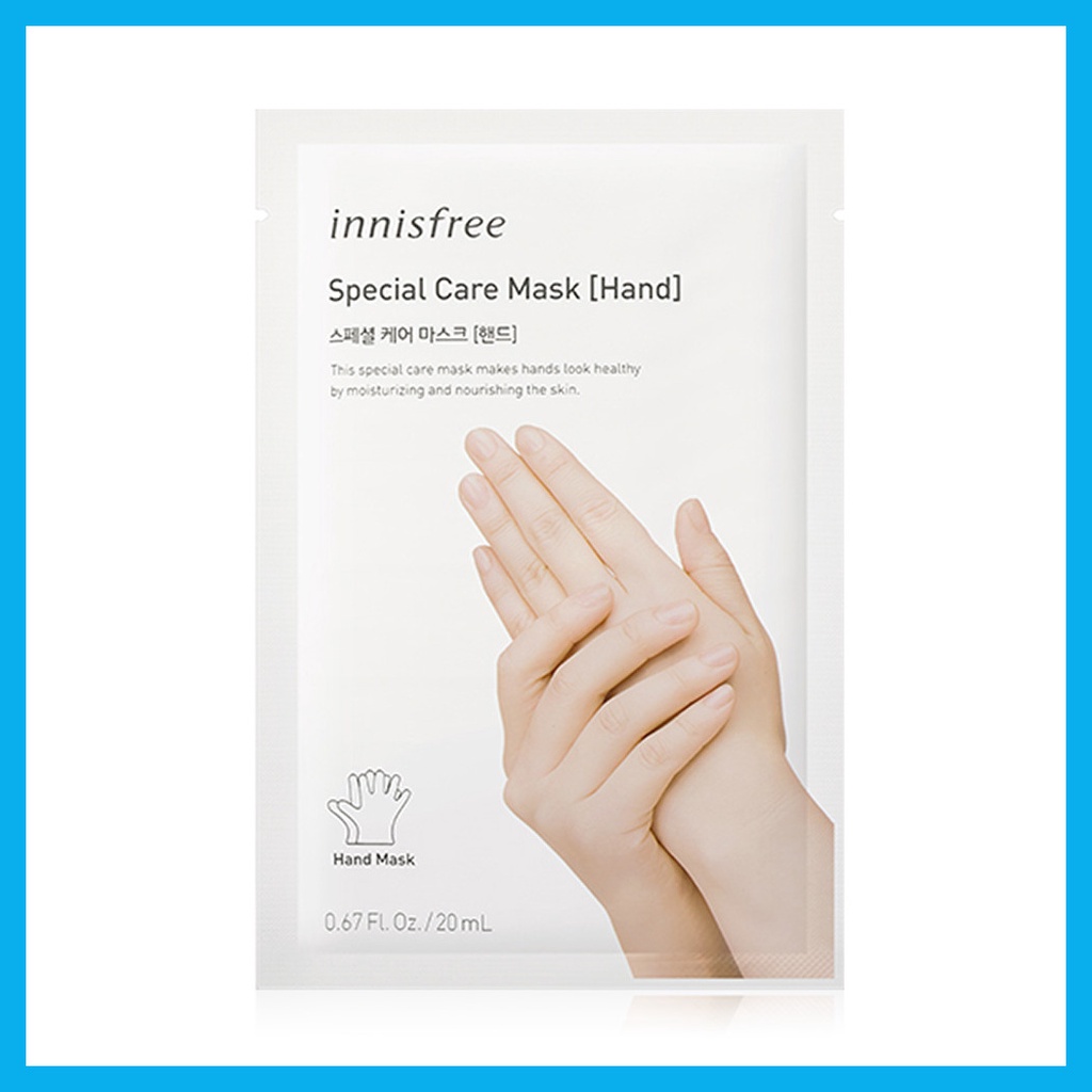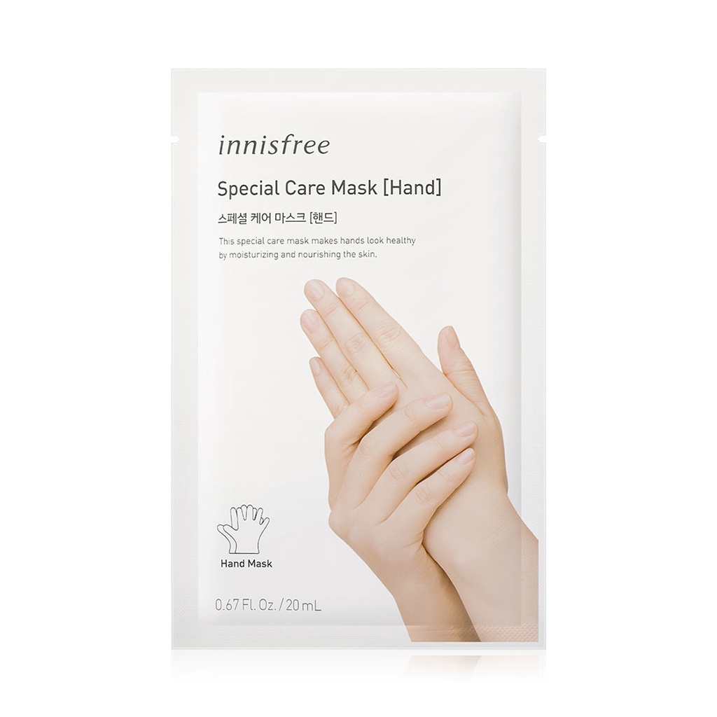 Cr.innisfree.comInnisfree Special Care Mask-Hand 20ml ผิวมือนุ่ม ชุ่มชื้น ด้วยแผ่นมาสก์สูตรพิเศษ ช่วยบำรุงผิวมือคุณให้นุ่มนวลน่าสัมผัส พร้อมปลอบประโลมผิวมือที่อ่อนล้าให้กลับมาสดชื่น