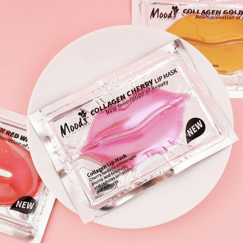 Moods Skin Care Collagen Cherry Lip Mask 8g แผ่นมาสก์คอลลาเจน สูตรเชอร์รี่ ให้ริมฝีปากดูกระชับอวบอิ่ม ช่วยลดการระคายเคือง ไม่หมองคล้ำ• ให้ริมฝีปากดูกระชับอวบอิ่ม