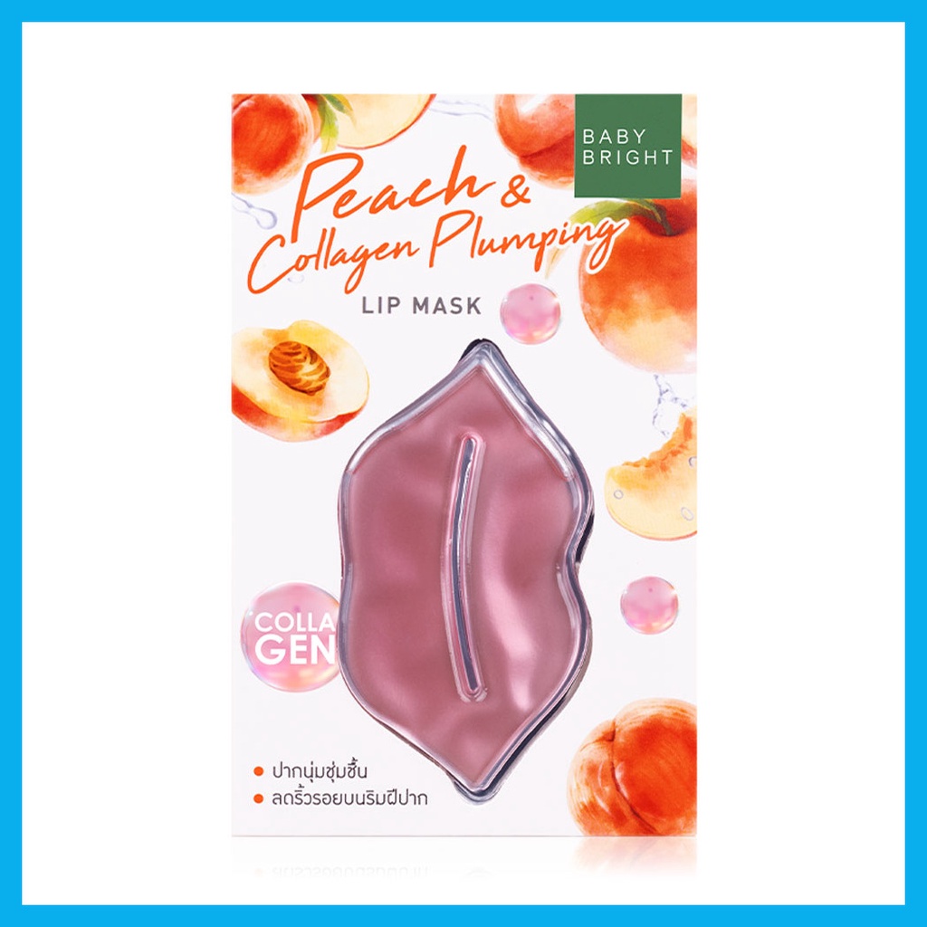 Baby Bright Peach & Collagen Plumping Lip Mask 10g บำรุงริมฝีปากให้สวยอวบอิ่ม น่าสัมผัสด้วยเบบี้ไบร์ทมาสก์ริมฝีปาก ที่ผสานสารสกัดจากลูกพีช (Peach Extract) และคอลลาเจน (Collagen) อุดมไปด้วยวิตามินเอ และวิตามินซี มีสารแอนตี้ออกซิแดนท์ ที่ช่วยให้ริมฝีปากอมชมพู ชุ่มชื้น กระชับ เต่งตึง ร่องปากแลดูตื้นขึ้น ทั้งยังมีคุณประโยชน์จาก Dipalmitoyl Hydroxyproline ทำหน้าที่เป็น Lip Plumping เติมเต็มริมฝีปากให้อวบอิ่ม และผสานพลังไฮยาโมเลกุลขนาดเล็กพิเศษ (Hydrolyzed Sodium Hyaluronate) เติมเต็มและกักเก็บความชุ่มชื้น พร้อมทั้งเสริมสร้างคอลลาเจนและอีลาสติน ทำให้ริมฝีปากแข็งแรง อิ่มฟูมากขึ้น เผยผลลัพธ์ริมฝีปากฉ่ำ อวบอิ่ม แลดูสุขภาพดีอย่างเป็นธรรมชาติ•เนื้อนุ่มบางเบาสีระเรื่อ