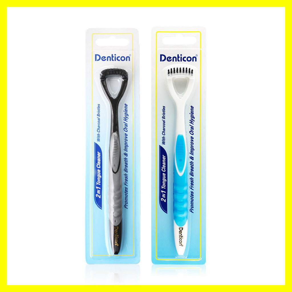 Denticon Tongue Cleaner 2in1 Random 1 Colorอุปกรณ์ทำความสะอาดลิ้นสำหรับผู้ใหญ่ 2in1 ใช้ขูดทำความลิ้นเพื่อขจัดคราบพลัค คราบอาหาร ซึ่งเป็นแหล่งสะสมของแบคทีเรีย อันเป็นสาเหตุหลักของการเกิดกลิ่นปากสามารถใช้ทำความสะอาดได้ทั้งลิ้น ได้ทั้ง 2 ด้าน• ด้านหน้า ขนแปรงชาโคลใช้แปรงทำความสะอาดคราบพลัค พร้อมลดการสะสมแบคทีเรีย 99.9% ตลอดอายุการใช้งาน