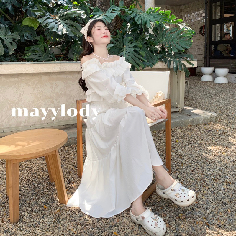 Cicishop(905) Váy Dài Màu Trơn có khóa kéo bên hông ĐẦM BOHO viền nhún bèo ngoại cỡ