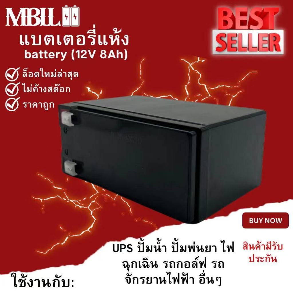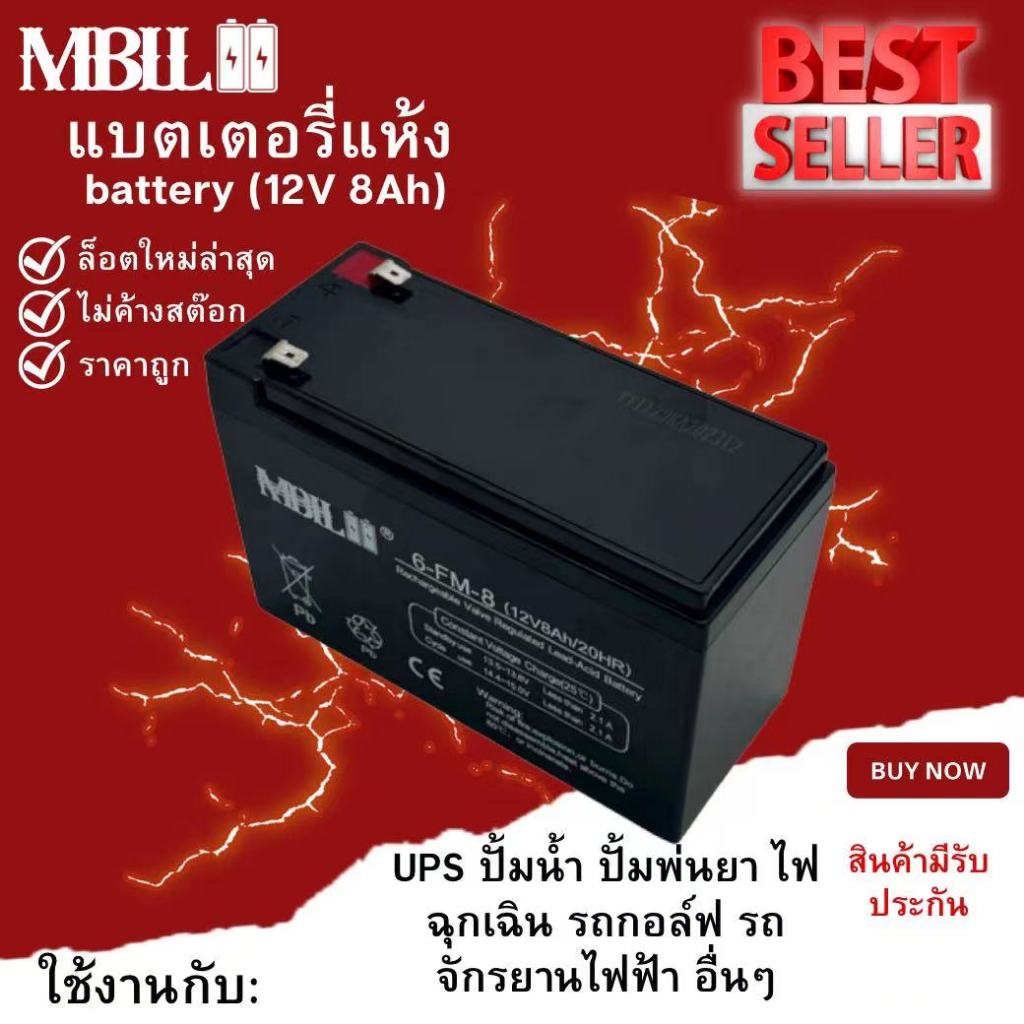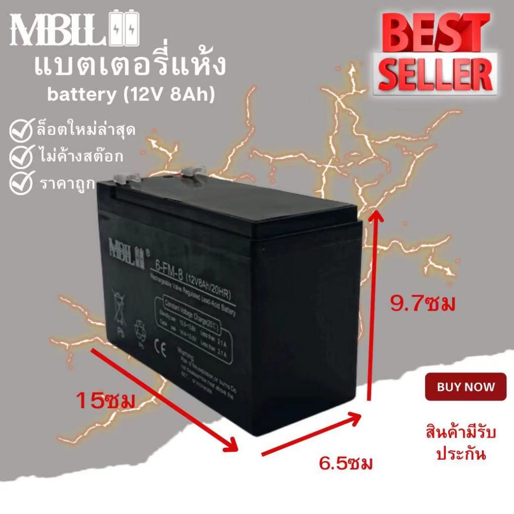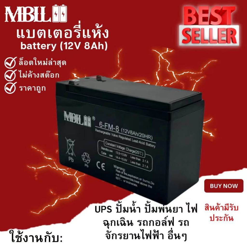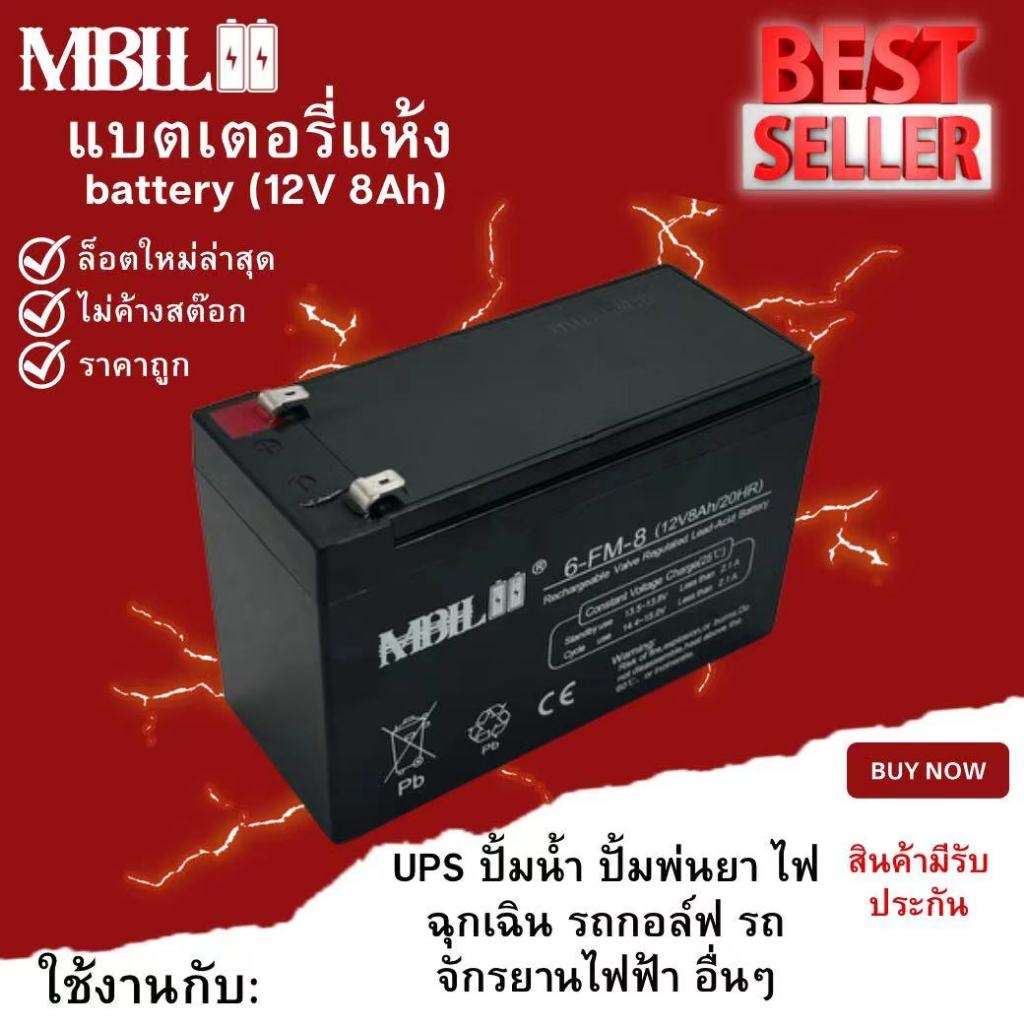 รายละเอียดสินค้า แบตเตอรี่แห้ง ยี่ห้อMBLL 12V 8AH แบตเตอรีแห้ง เครื่องสำรองไฟ UPS ไฟฉุกเฉิน เครื่องมือเกษตรระดับแรงดันชาร์จ 13.5-13.8 โวลล์