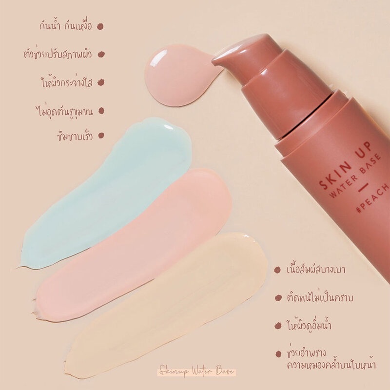 Merrez'ca Skin Up Water Base 30ml #Peach เมคอัพเบสเนื้อสัมผัสบางเบา เกลี่ยง่าย กันน้ำ กันเหงื่อ ติดทนนาน ช่วยปรับสภาพผิวก่อนลงรองพื้น อำพรางความหมองคล้ำบนใบหน้า และปรับสีผิวให้ดูสม่ำเสมอ เผยผิวดูเรียบเนียนกระจ่างใสอย่างเป็นธรรมชาติ พร้อมควบคุมความมันบนใบหน้า และเติมความชุ่มชื้นให้กับผิว ด้วยสารสกัดจากมะพร้าว• #Peach เหมาะสำหรับผิวสองสี