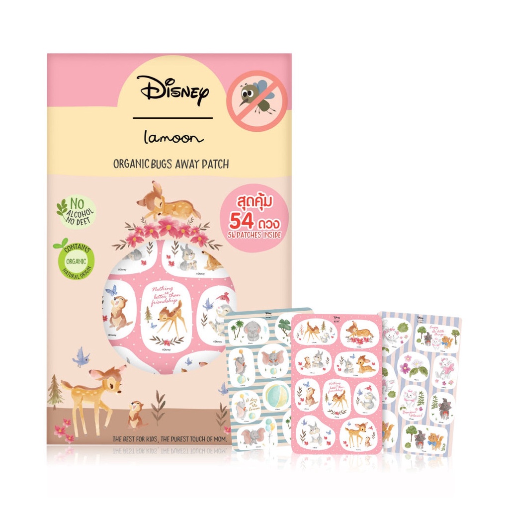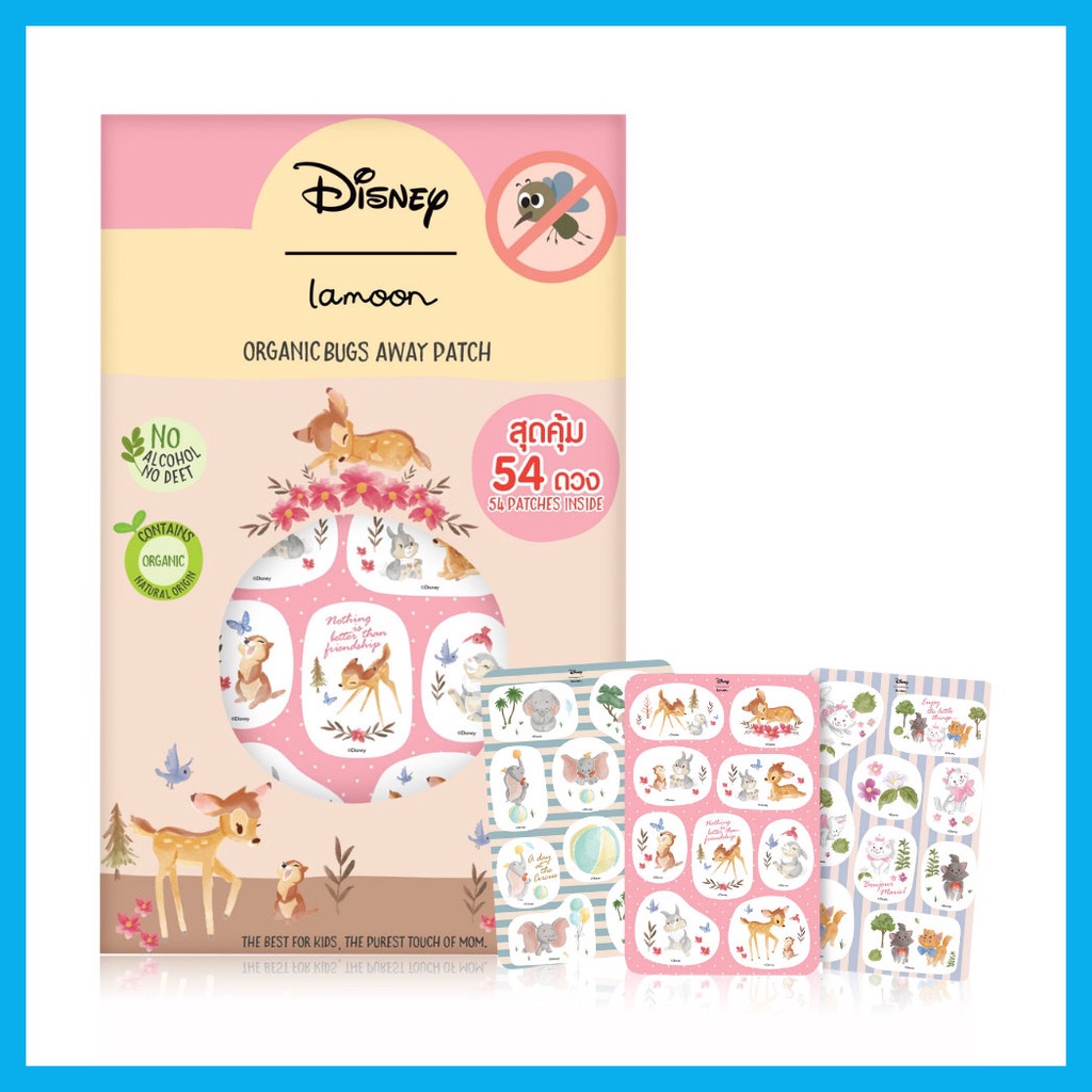 Cr.facebook.com/lamoonbabyLamoon x Disney Organic Bugs Away Patch [54pcs] สติ๊กเกอร์กันยุงออร์แกนิค ลาย Disney แสนน่ารัก ช่วยป้องลูกน้อยจากยุงร้าย ด้วยกลิ่นตะไคร้หอมและเลมอนที่สกัดจากธรรมชาติ 100% กลิ่นปลอดภัยต่อลูกน้อยแม้เด็กแรกเกิด