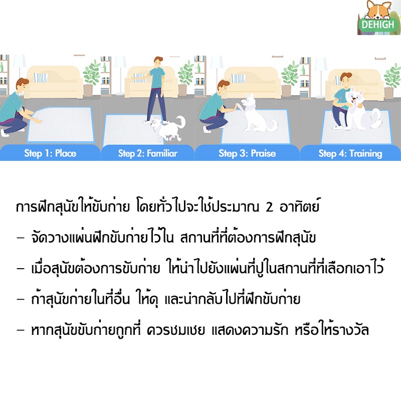 1. วางแผ่นรองบนพื้น/ถาดรองโถปัสสาวะพลาสติก (วางกระดาษทิชชู่ไว้ด้านบนและด้านพลาสติกอยู่ด้านล่าง) และวางไว้ในระยะที่สุนัขเอื้อมถึงได้ง่าย เก็บให้ห่างจากอาหารสุนัขและเครื่องนอน