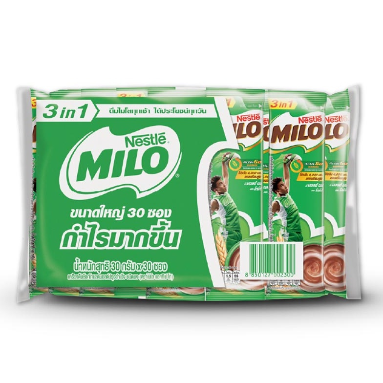ไมโล เครื่องดื่มมอลต์รสช็อกโกแลตสำเร็จรูปชนิดผง 26 กรัม (แพ็ค 30 ซอง)เครื่องดื่มมอลต์รสช็อกโกแลตสำเร็จรูปชนิดผงผลิตจากผงโกโก้คุณภาพ มีส่วนผสมของนมผงและมอลต์สกัดจากข้าวบาร์เล่ย์ที่มีคุณค่าจากธรรมชาติมีส่วนผสมของโปรโตมอลต์ ซึ่งแตกต่างจากมอลต์ทั่วไป เพราะเป็นมอลต์สกัดด้วยกระบวนการผลิตที่ทันสมัยจากศูนย์วิจัยผลิตภัณฑ์ ลิขสิทธิ์ของเนสท์เล่สวิตเซอร์แลนด์อุดมด้วยคุณค่าจากแร่ธาตุและวิตามินบี1, บี2, บี6, บี12 และแคลเซียมสูงให้พลังงานทั้งหมด 80 กิโลแคลอรี/20 กรัมSản phẩm cùng danh mục