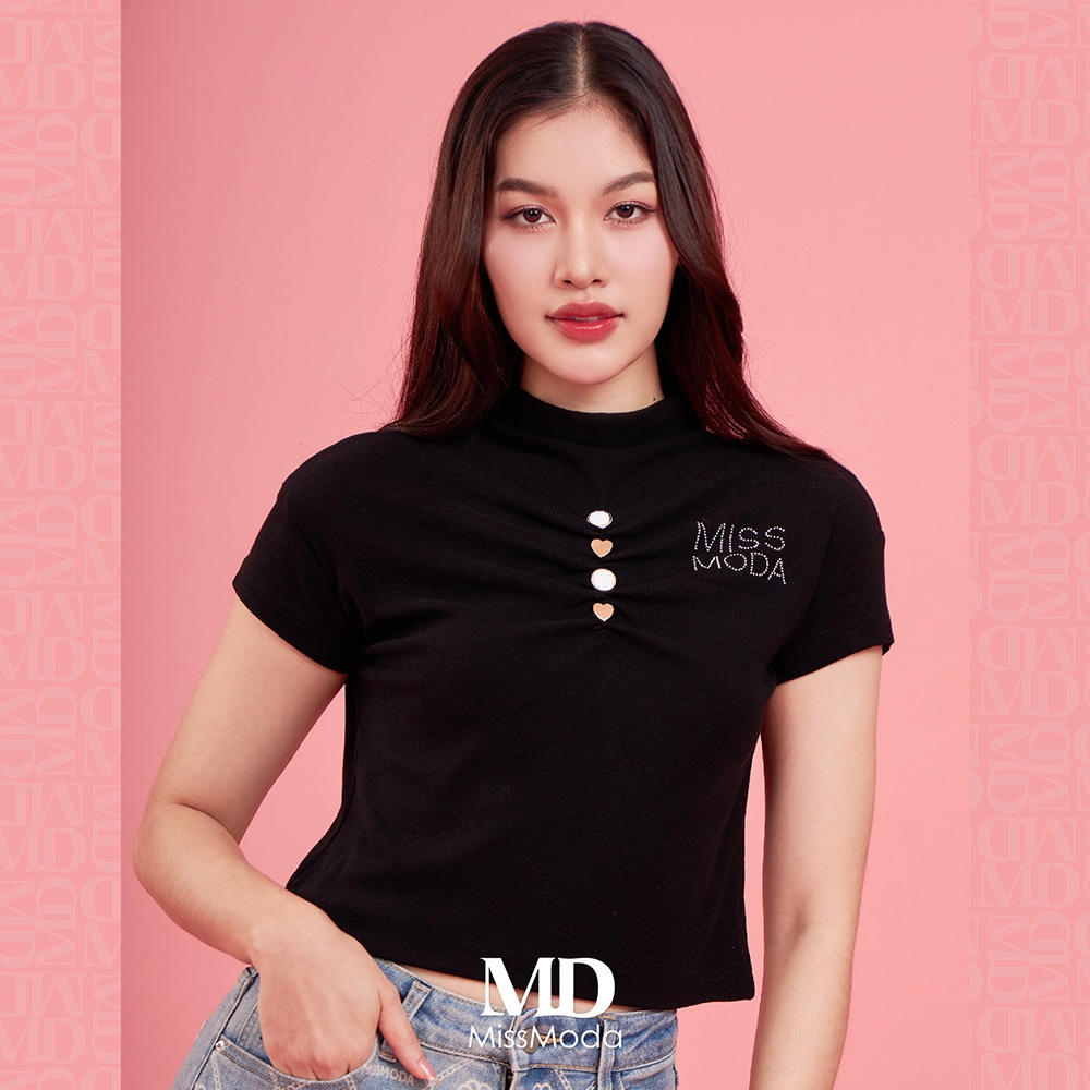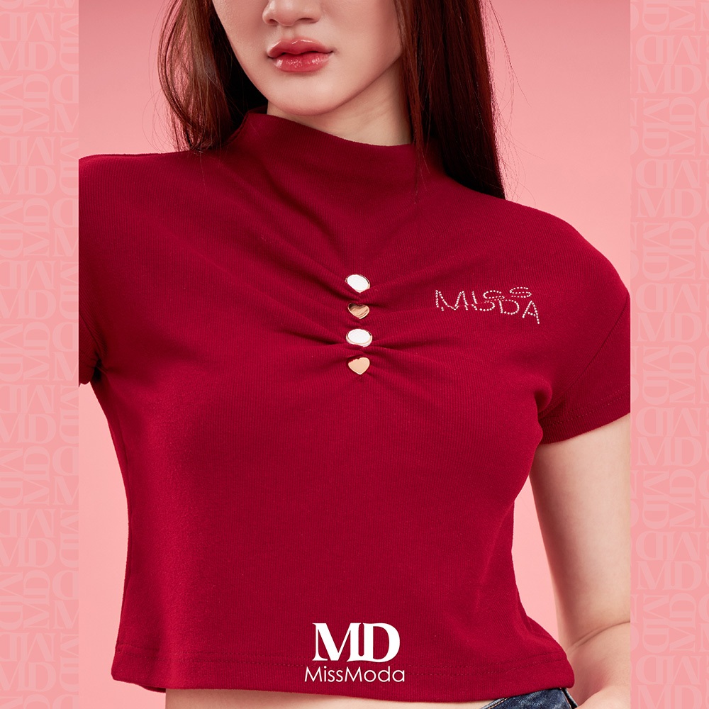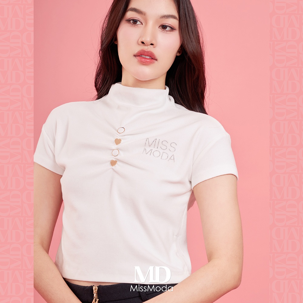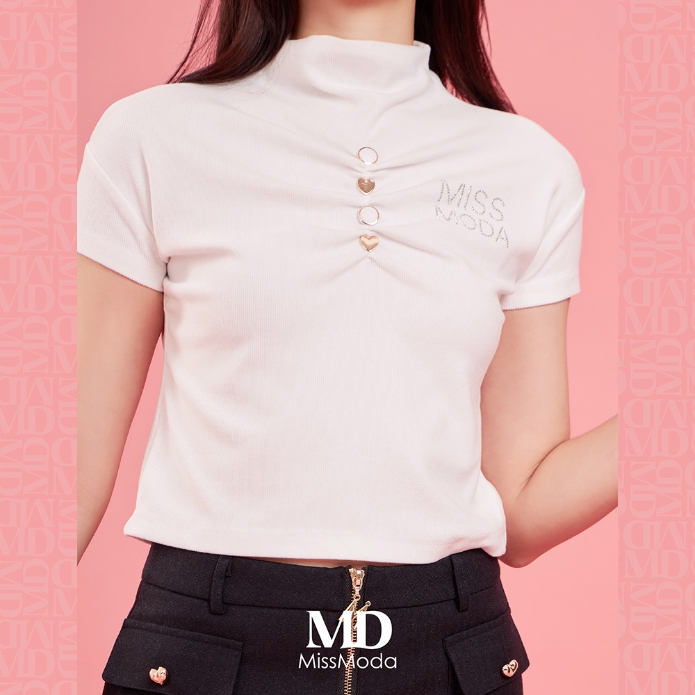 รายละเอียดสินค้า New Arrival️ Brand MISSMODAMissmodaรุ่นMC-241TT024 เสื้อยืดคอปีนจับจีบแต่งกระดุมหัวใจ เสื้อผู้หญิงแบรนด์(เฉพาะเสื้อ) มี 3สี ดำ/ขาว/แดง