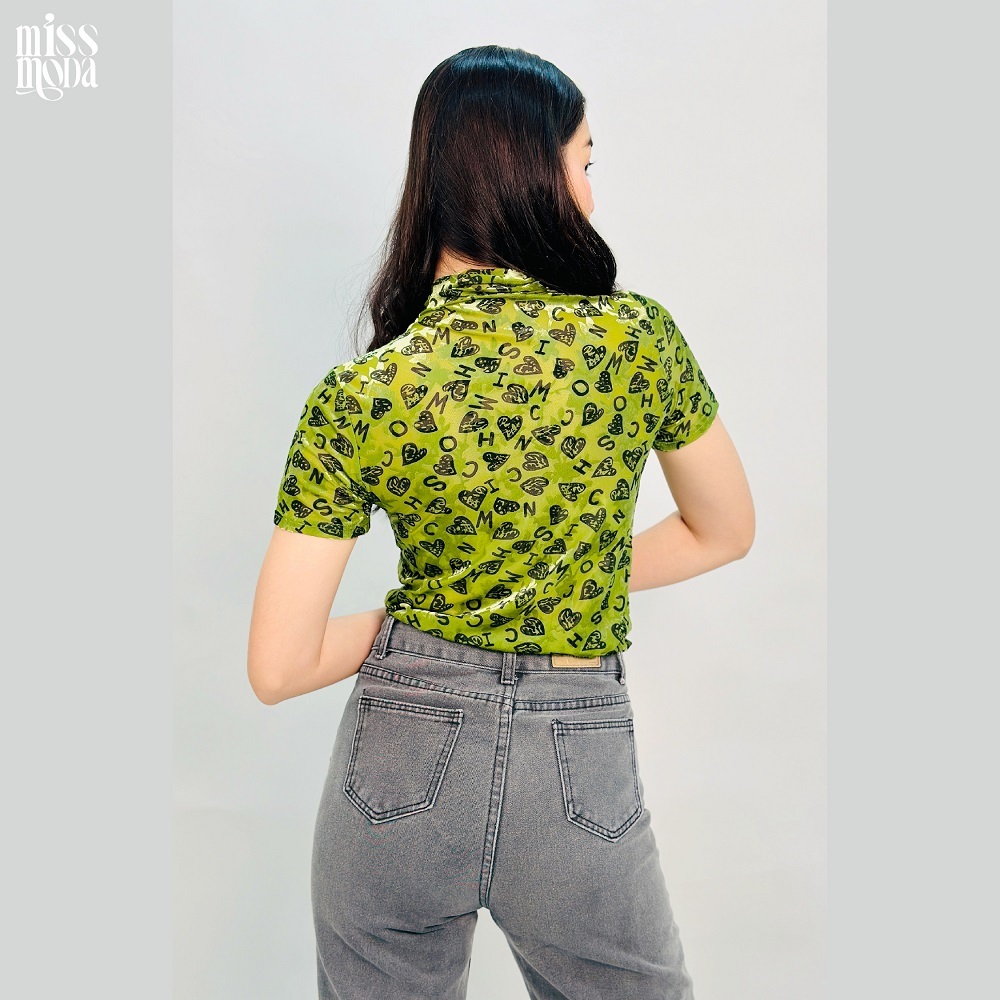 Mismoda áo phông nữ MC-241TT024 áo xếp ly có nút trái tim thương hiệu Áo nữ (chỉ áo) có 3 màu: đen/trắng/đỏ