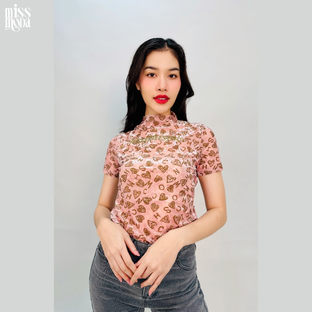 เสื้อคอปีนผ้ากำมะหยี่แบบบางรีดเพชรโลโก้ แมทช์ได้ทุกลุค ทุกสไตล์ เนื้อผ้าดีไซน์ลดลายน่ารักไม่เหมือนใครสีหวานละมุน น่ารักม๊ากก