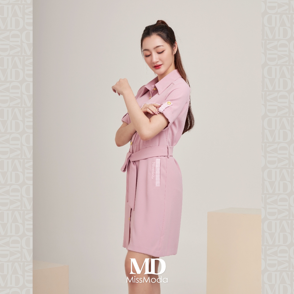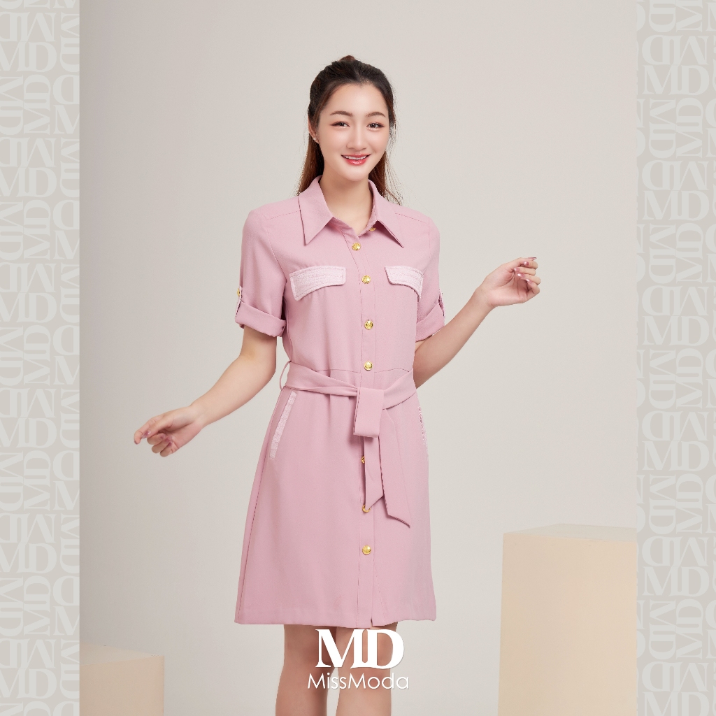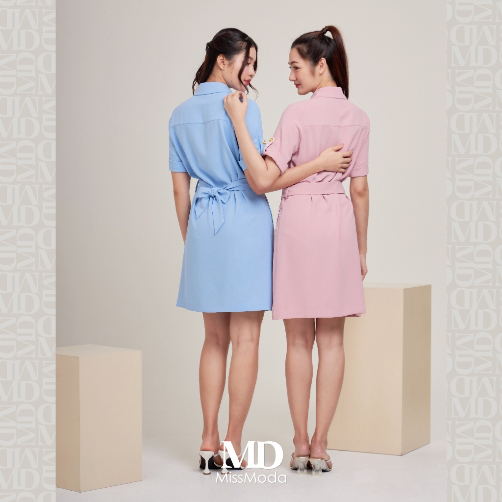 รุ่น MC-241TD032 เดรสผูกเอวกระเป๋าแต่งผ้าทวีต มี 2 สี สีชมพูและสีฟ้า