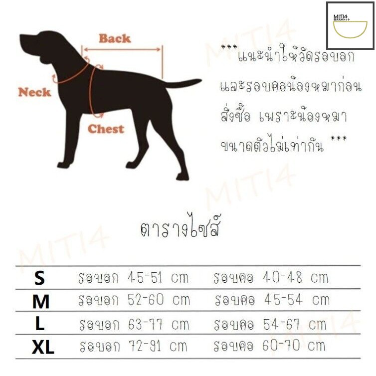 *** โปรดวัดรอบอกและรอบคอ น้องหมาก่อนตัดสินใจสั่งซื้อ ***
