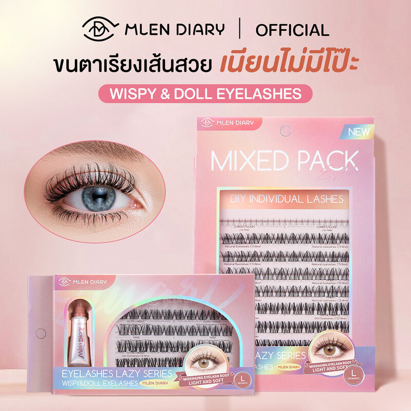 MLEN DIARY Lazy Series Eyelashes 4 Rows #Wispy & Dollเพิ่มดวงตากลมโตดุจธรรมชาติด้วยขนตาปลอมแบบช่อ รุ่น Wispy & Doll ดีไซน์ขนตาที่เหมาะกับทุกลุคของคุณหลังใช้งาน มาพร้อมกาวติดขนตาปลอม เนื้อบางเบา แห้งไว ไม่จับตัวเป็นก้อน ช่วยให้การติดขนตาเป็นเรื่องง่ายกว่าที่เคย•ผลิตจากวัสดุคุณภาพดี