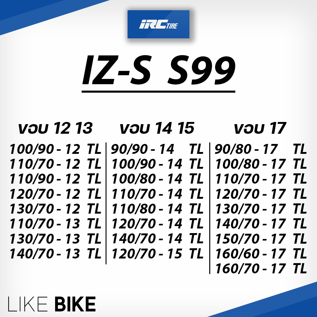 **เปิดร้านใหม่** ยางนอก IRC IZ-S S99 ขอบ 12 13 14 15 17 ยางรถมอเตอไซค์ พร้อมส่ง มีทุกรุ่น มีทุกขนาด สอบถามได้เลยค่ะสัญลักษณ์