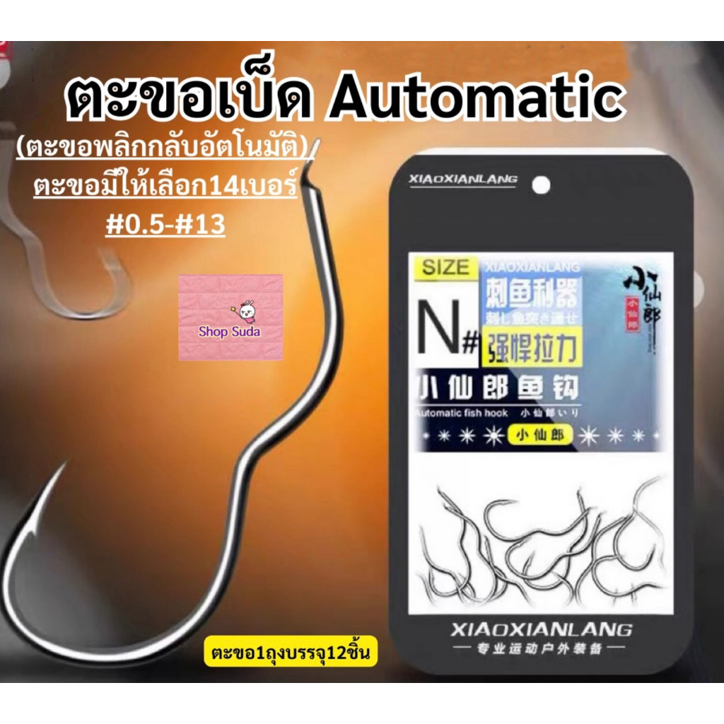 -ตะขอ automatic (ตะขอพลิกอัตโนมัติ)1ถุงบรรจุ12ชิ้น-ตะขอมี15เบอร์ #0.5-#14