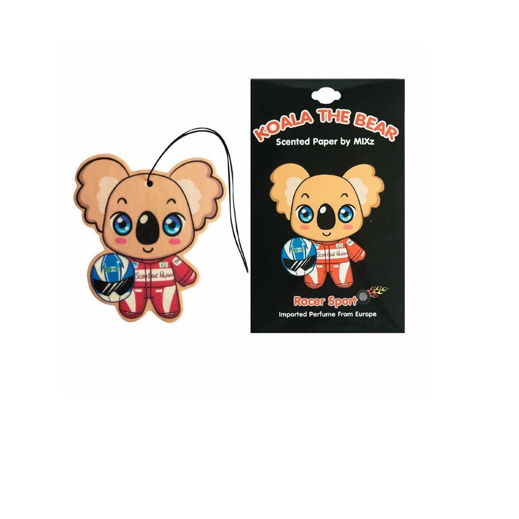 น้ำหอมปรับอากาศชนิดแผ่น Koala The Bear จากแบรนด์ MIXz ทำจากน้ำหอมชั้นดีจากฝรั่งเศส กลิ่น RACER SPORT มอบความหอมยาวนานถึง 30 วัน และยังช่วยขจัดกลิ่นไม่พึ่งประสงค์ ภายในรถยนต์ ตู้เสื้อผ้า ห้องน้ำ ห้องนอน หรือห้องทำงาน แขวนได้ทุกสถานที่ ต้องการความหอม พร้อมทั้งยังส่งกลิ่นหอมสดชื่นให้คุณได้ตลอดทั้งวัน