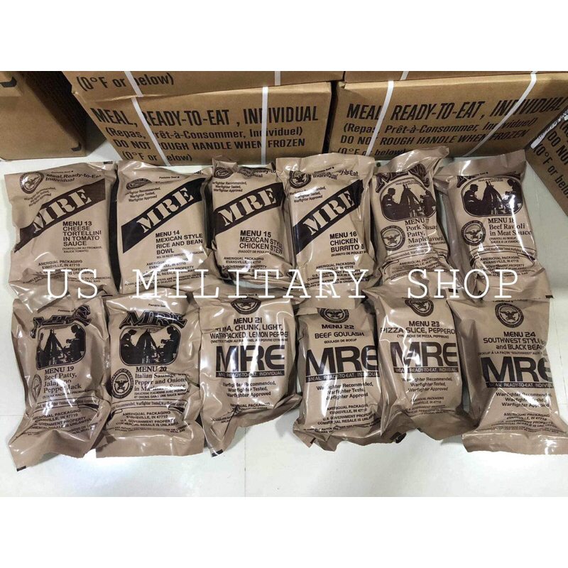 Mre USA Case B có sẵn trong menu 13-24 thực phẩm khẩn cấp quân đội Hoa Kỳ bữa ăn quân đội sẵn sàng để ăn cá nhân