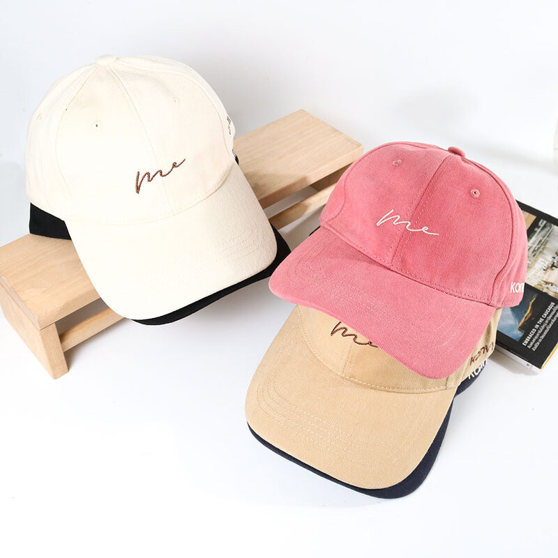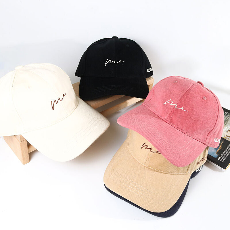 Lovito lfa08598 Mũ nữ kiểu Mỹ retro thêu chữ phong cách thường ngày màu khối (Nâu/trắng/hồng/xanh lá/Đen)