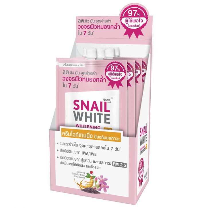 สรรพคุณสินค้า : จัดการผิวหมองคล้ำ ให้ผิวขาวขึ้นใน 7 วันช่วยปกป้องผิวจากแสงแดดด้วย SPF30 PA+++ช่วยปรับผิวให้ขาวกระจ่างใสขึ้นทันทีช่วยปกป้องผิวจากมลภาวะ ฝุ่น ควัน สาเหตุผิวหมองคล้ำ ช่วยลดเลือนจุดด่างดำ รอยดำจากสิว